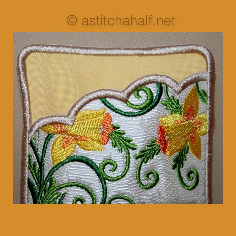 All-In-The-Hoop Project. Only one (1) hooping necessary, so quick and easy. This is a great gift to yourself or a dear friend.