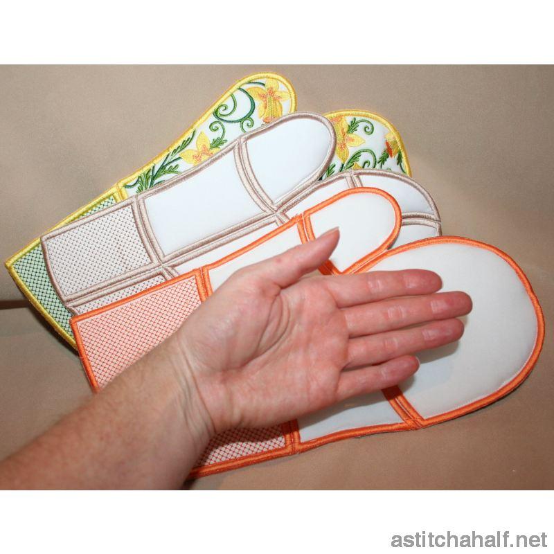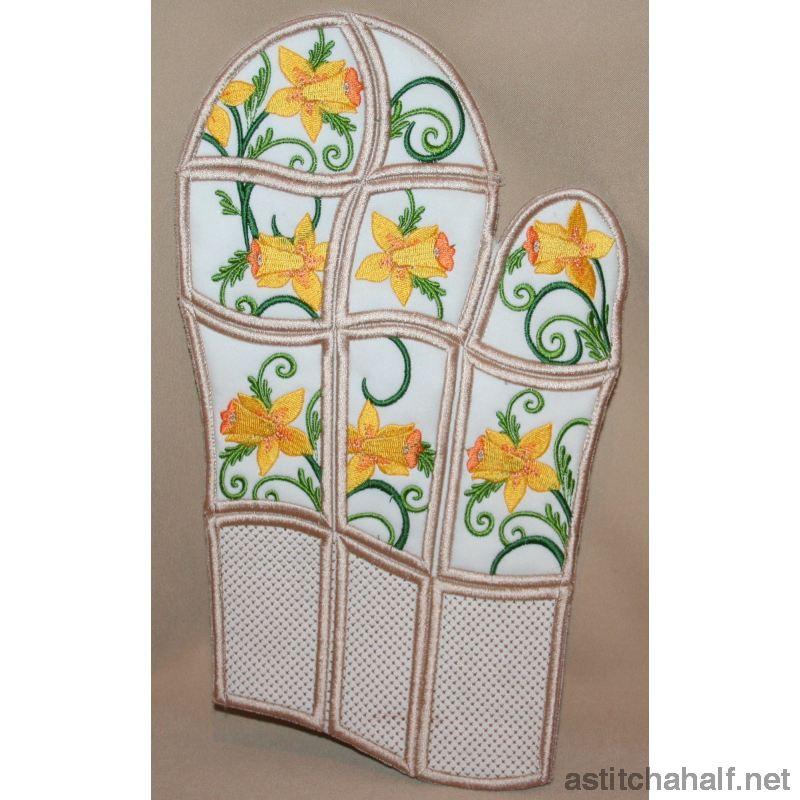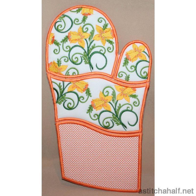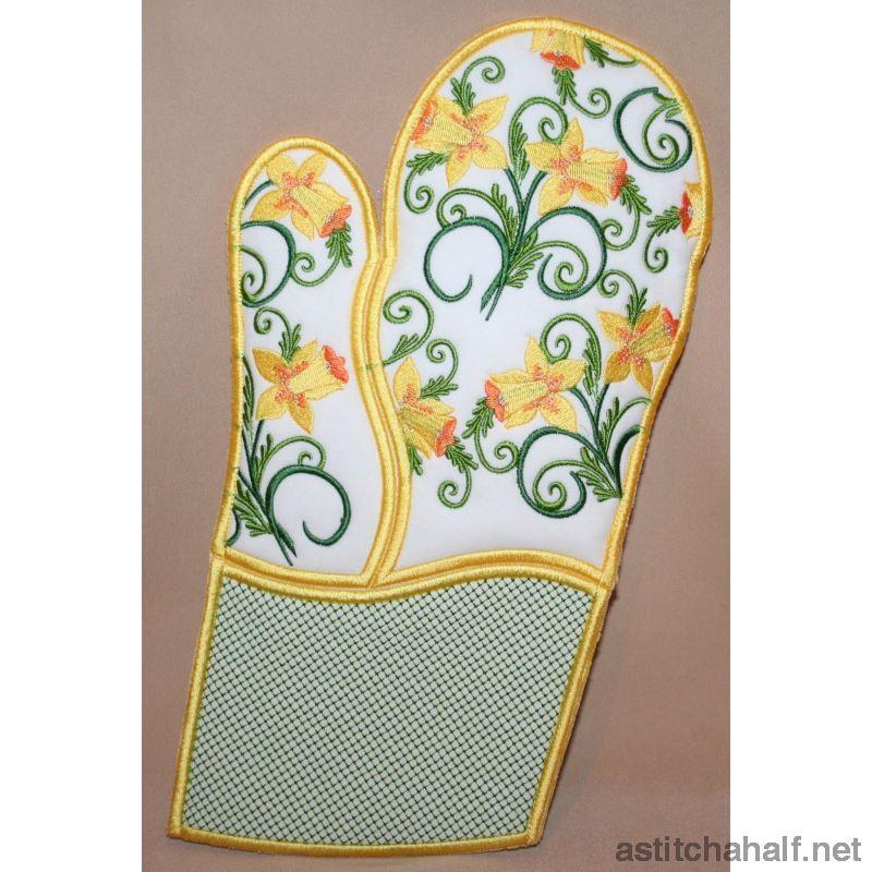 Flowers are always welcome and daffodils are my favorite. Enjoy stitching these stylish oven gloves for everyone who loves to cook and bake.