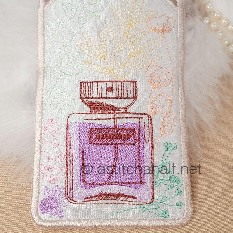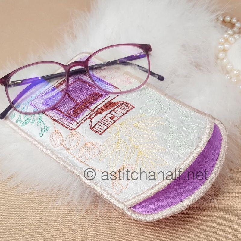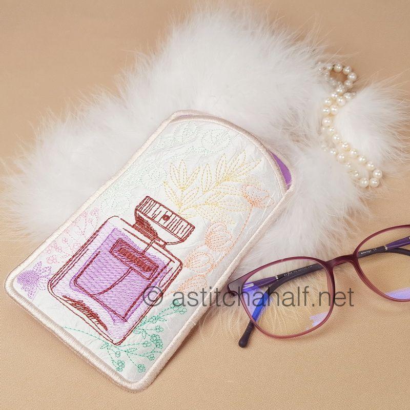 Daisy Eau De Toilette Eyeglass Case is the ideal, chic eyeglass case that fits easily into your purse, tote bag or just in your pocket. It easily fits sunglasses or reading glasses. This SUPER EASY fun project is completely done ALL IN THE HOOP! No sewing required!