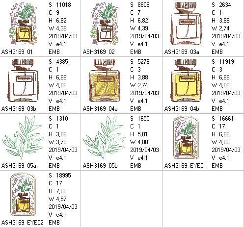 • Designs 3 x 4*4 hoop", Stitch Count 1310 - 5278