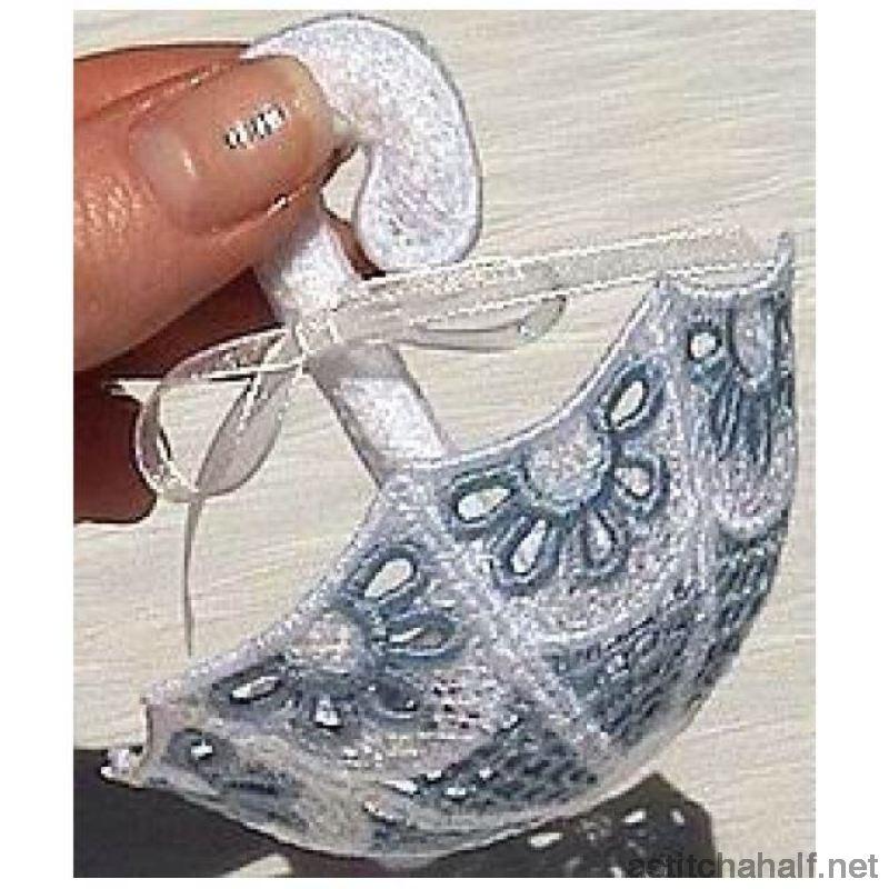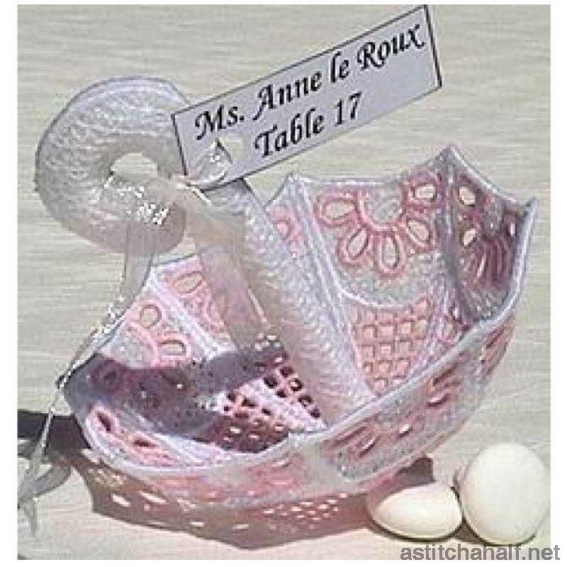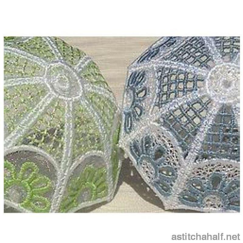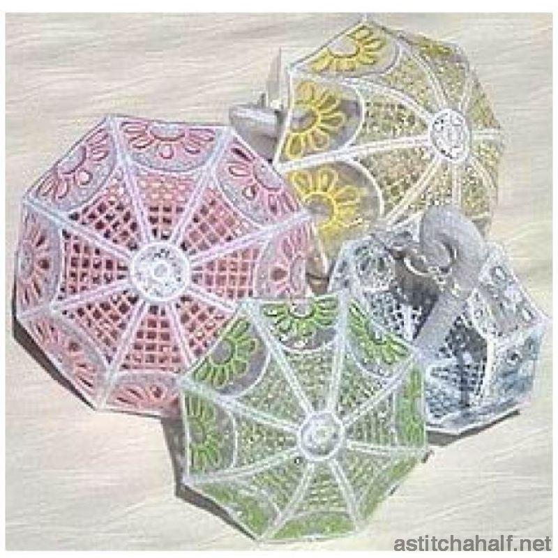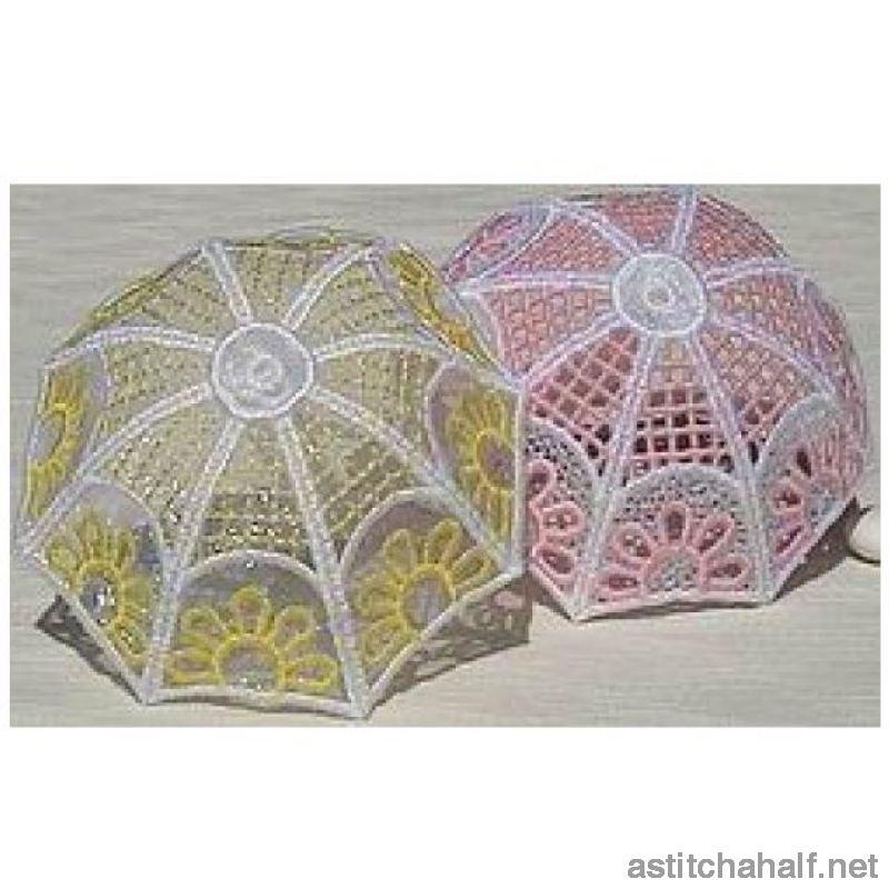 The umbrella dome is done all in one hooping. The umbrella shaft is optional - a thin dowel stick works great too. A lovely favor for all occasions add tiny flowery arrangements or sweets, and what a wonderful way to say "Thank you"