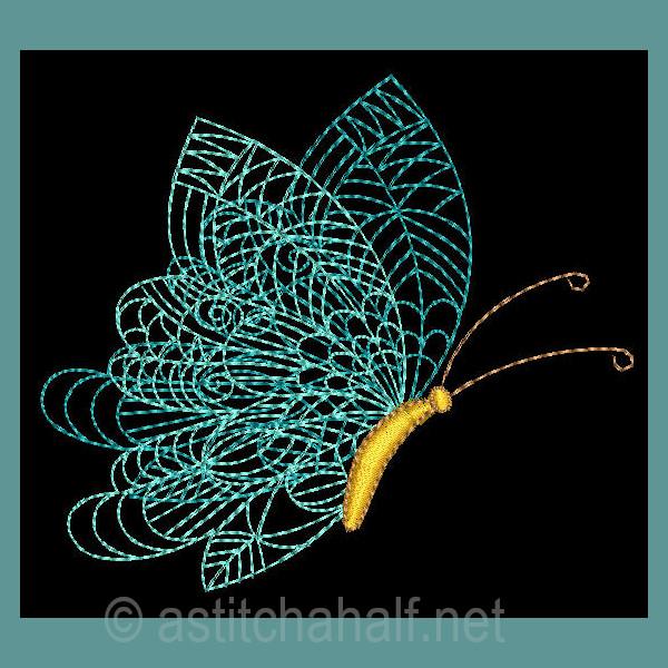 You receive 2 butterflies. They stitch out quick and easy creating exquisite embroidery in a jiffy. Used variegated thread for a range of complimentary colors to give that butterfly a unique look.