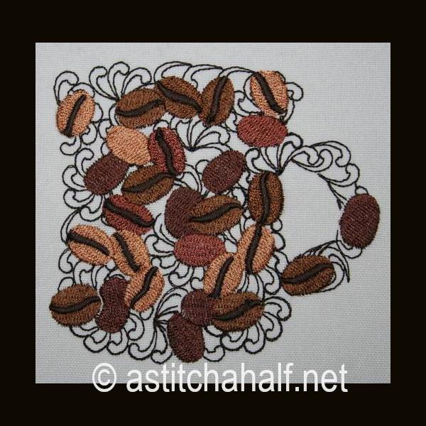 and the unique coffee design in 2 hoop sizes