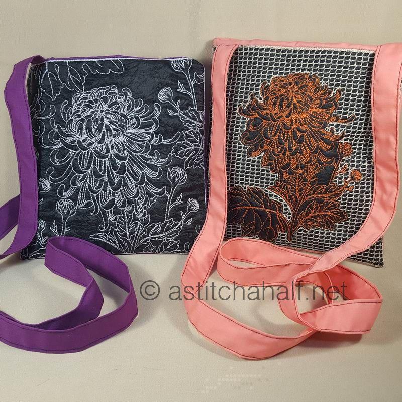Duo Oriental Chrysanthemum Cross Body Bags - Chalk Board and Trapunto