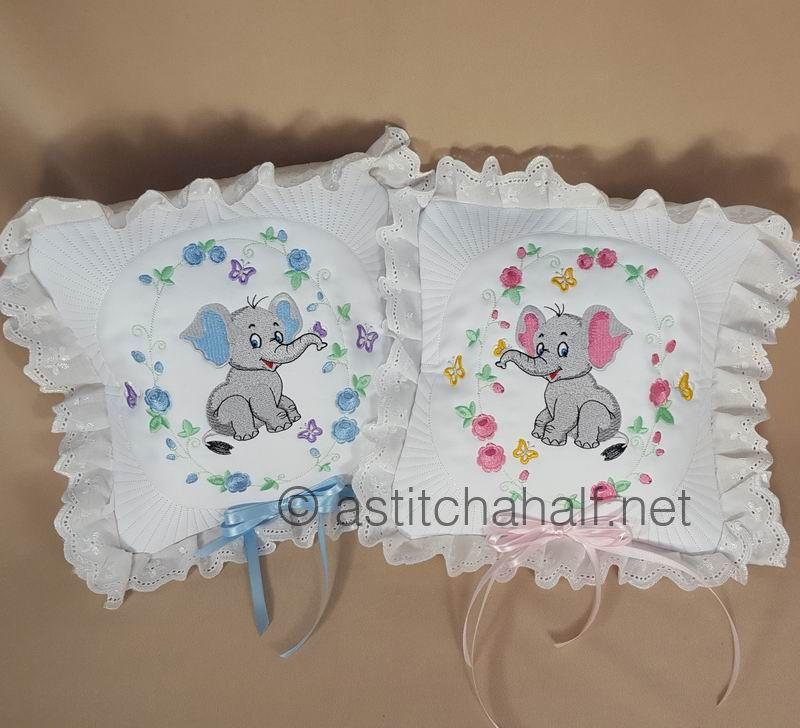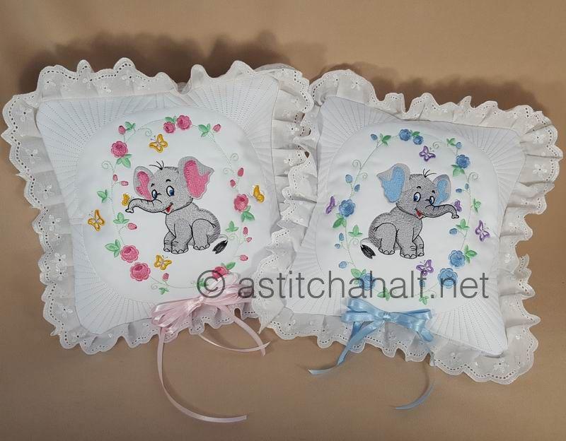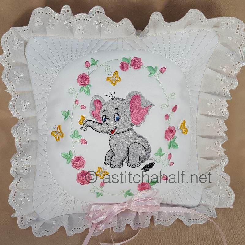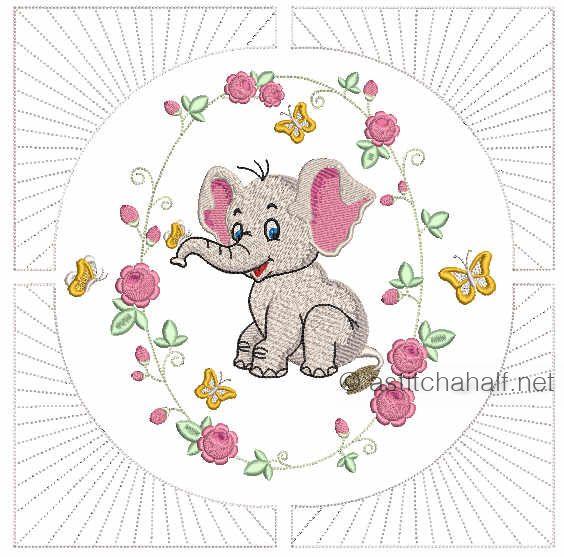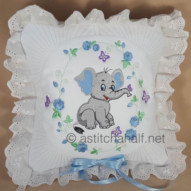 The Eli and Ella Baby Elephant Pillow Quilt Combo enables you to embroidery a variety of matching projects with the same theme. These cute designs are unique and timeless, as it can be used to decorate your baby room, and the roses and daisies are perfect for a show pillow, aprons or simply a continuous border of your favorite tablecloth. A beautiful addition to your embroidery collection.