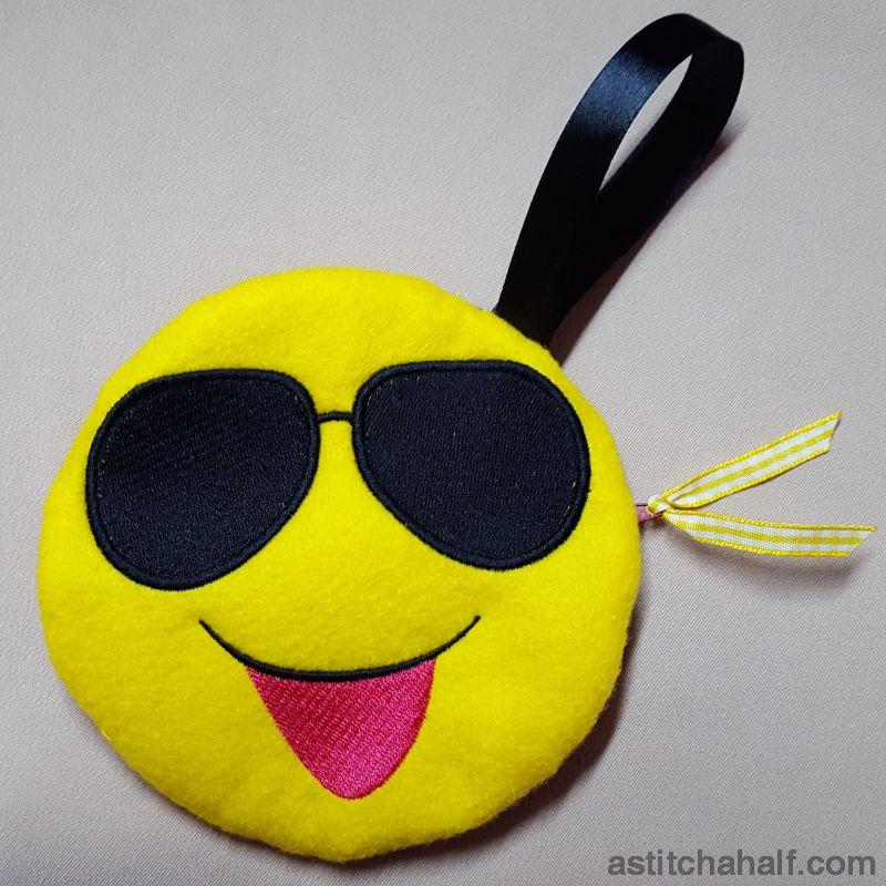 Emojis are those little pictures that show facial expressions to show a person's mood or feelings to liven up our text messages. And now you can find this Looking Cool His face right on your Emoji bag. Brighten up your day, create this In the Hoop Emoji bag and see the smiles on your friends faces.