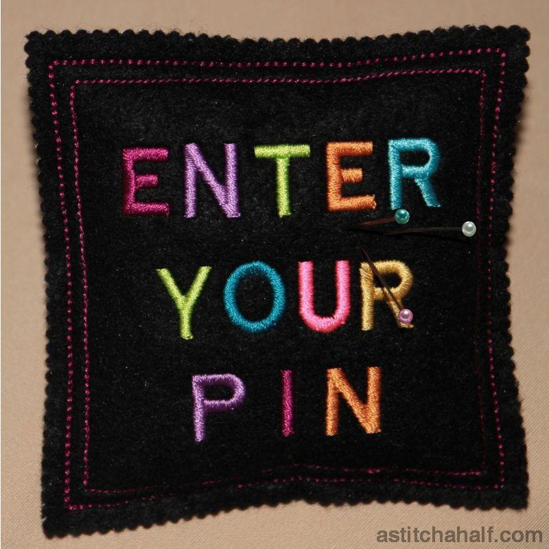 Make this beautiful little pin cushion with the "tongue-in-cheek" slogan, ENTER YOUR PIN. It will bring lots of smiles and you can even use it to enter your pins.