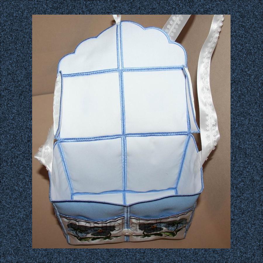 Fancy Pansy Tote Bag for young and old. Change your fabric and Thread color to create a fresh new look. Have the fresh-faced Pansy to keep you company while your bag is big enough for all your shopping and more.