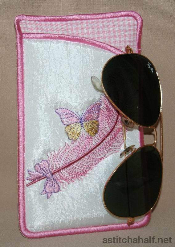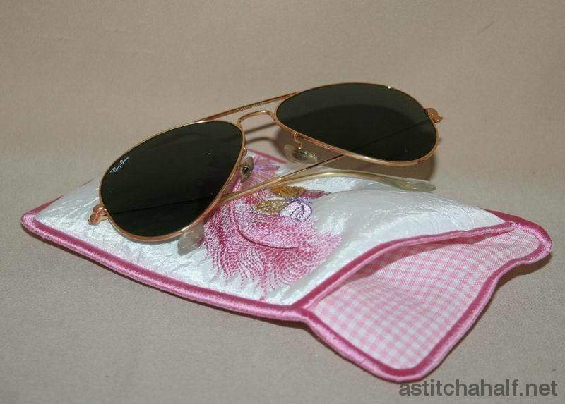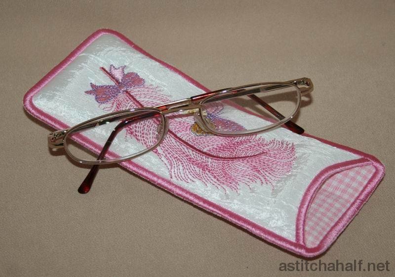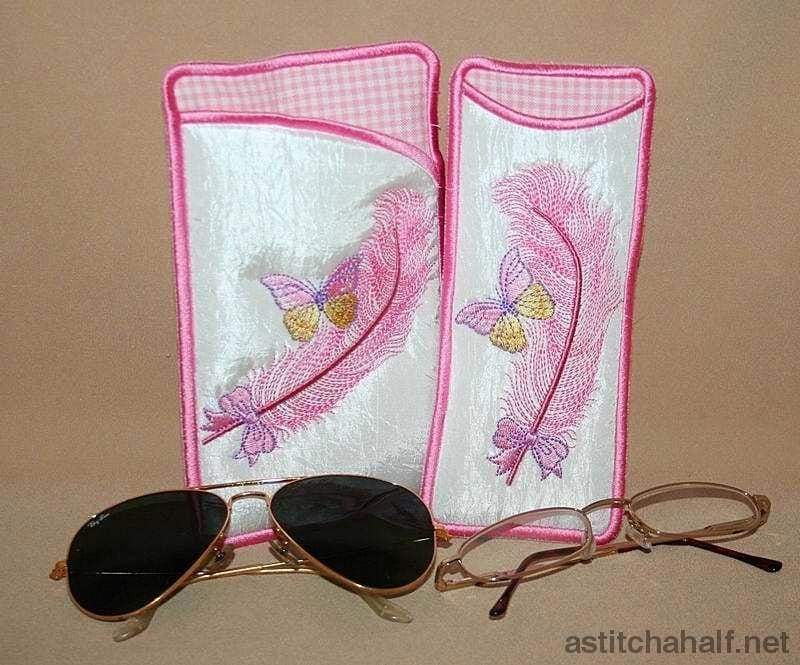 You receive 2 eyeglass cases, a wide and a slim size for your reading and sun glasses. The best of all...this is an ALL IN THE HOOP project, thus only one hooping, NO sewing required