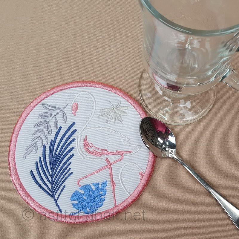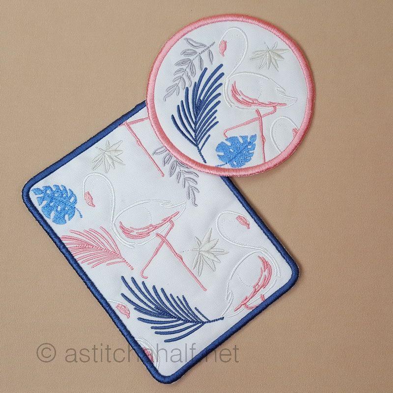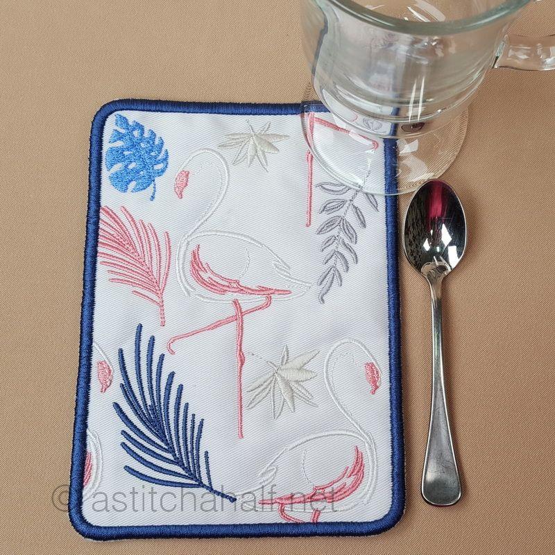 Pastel shades of soft pink Flamingos to decorate your mug rugs. The Flamingo Brush Strokes Mug Rug and Coaster set are smaller than a place mat but ideal for your tea and a snack.