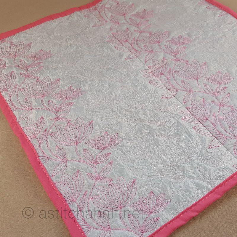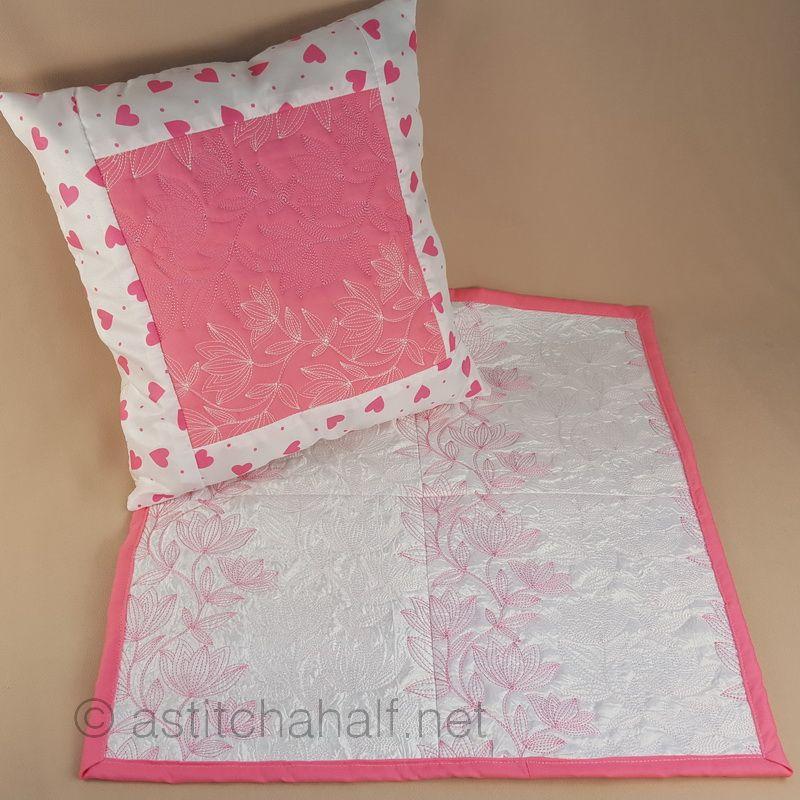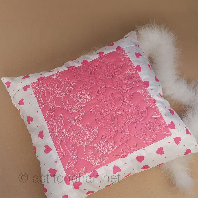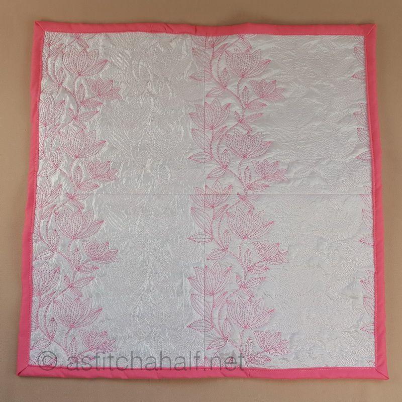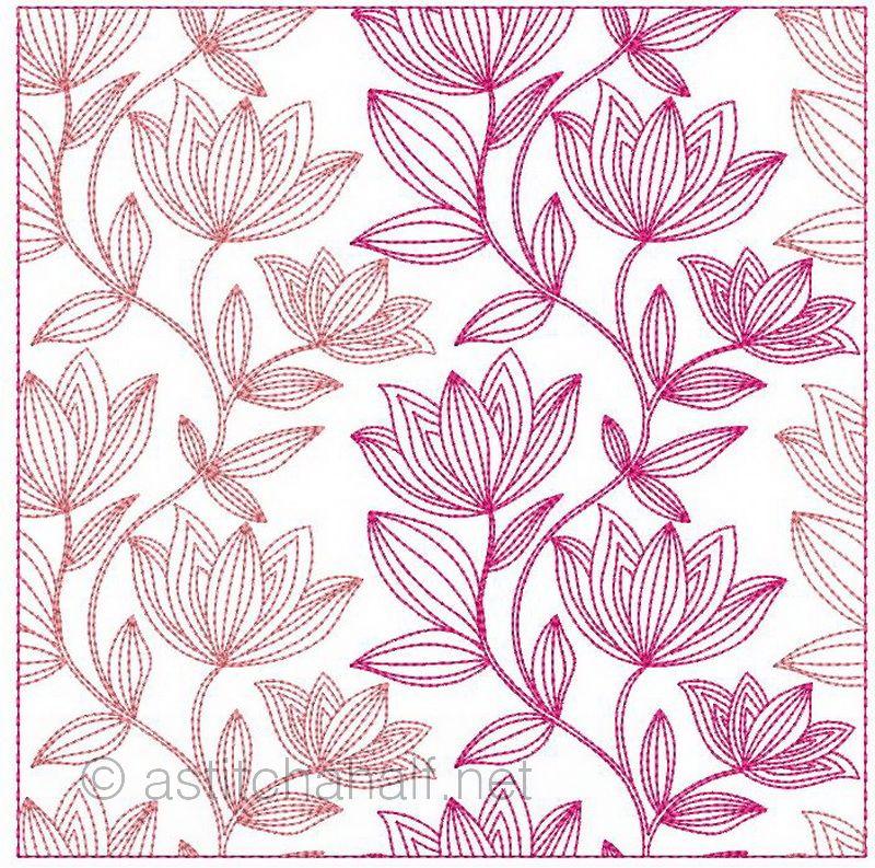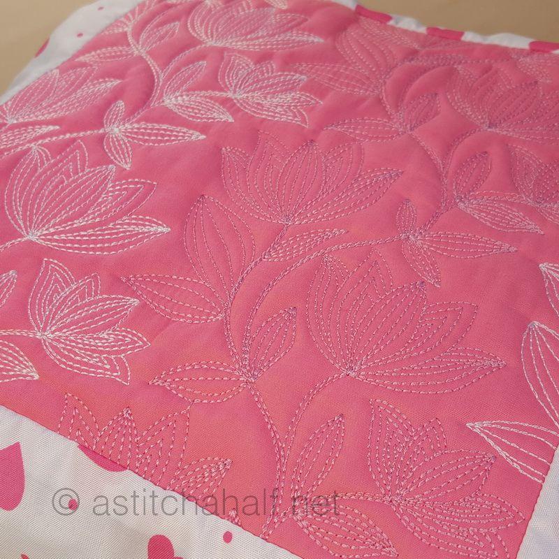 This Seamless pattern is a Repeating pattern, as shown in the Quilt we made (22" when finished using four 9" designs). You can make the quilt big or small, by simply stitching out more blocks in the hoop size you prefer, because the pattern joins beautifully with the pattern in the next block and the next block and the next block...Or stitch out only 1 Block to create a Beautiful Quilted Pillow.
