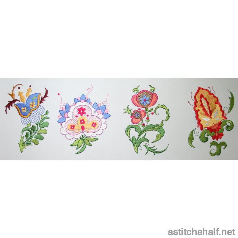 The Flower Nouveau Combo is a range of colorful Flowers with a touch of modern flair to create exquisite embroidery. Use it to decorate your pillows or to make a quilt.