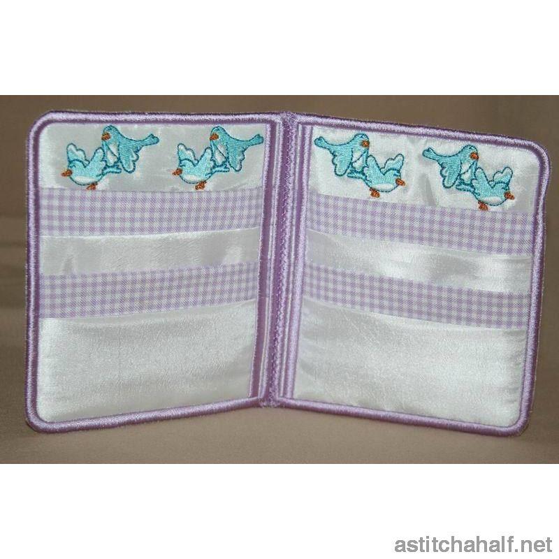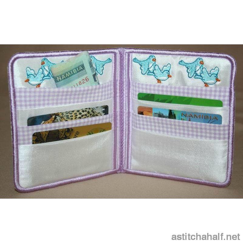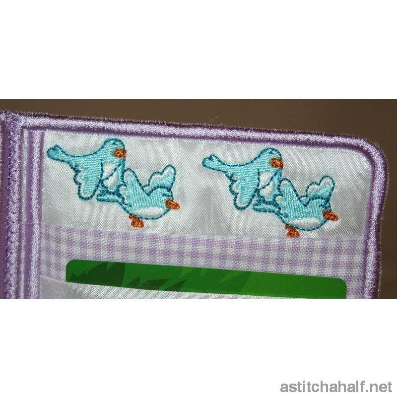 An All in the Hoop Project where Little Miss Bonnet is spending some time flying with her little bird friends. Keep your VISA cards, coins and dollars in this stylish wallet. Complete instruction file included.