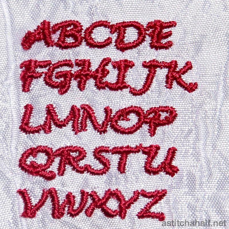 Font Size: 0.24" (6mm) in height 4x4 (100mm x 100mm) Hoop