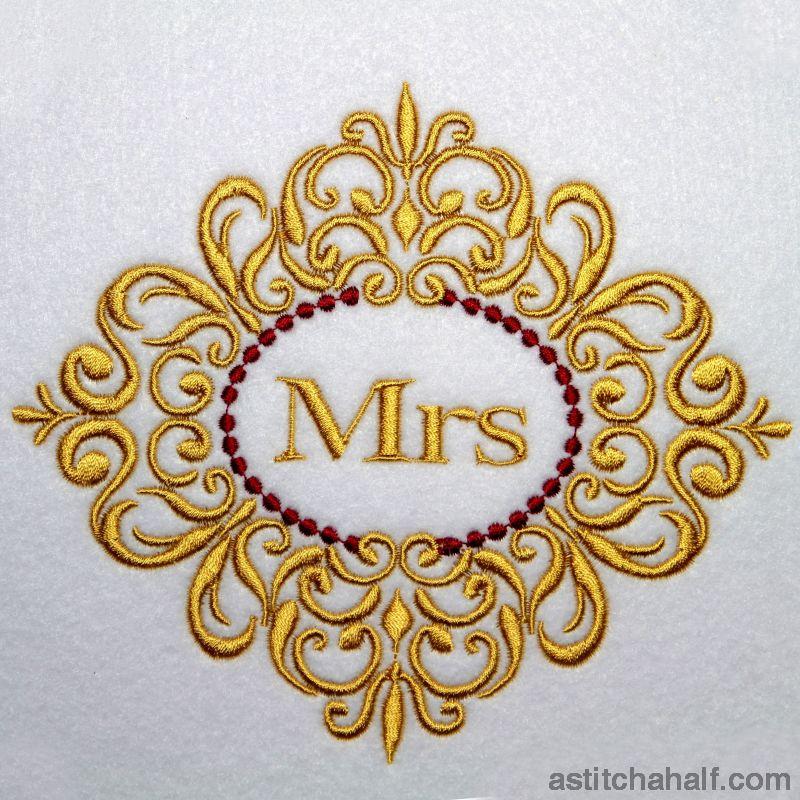 Frame Windsor is a design fit for royalty. See the magnificent frame, stitched in rich maroon and golden colors. Mr and Mrs monograms never looked so good.