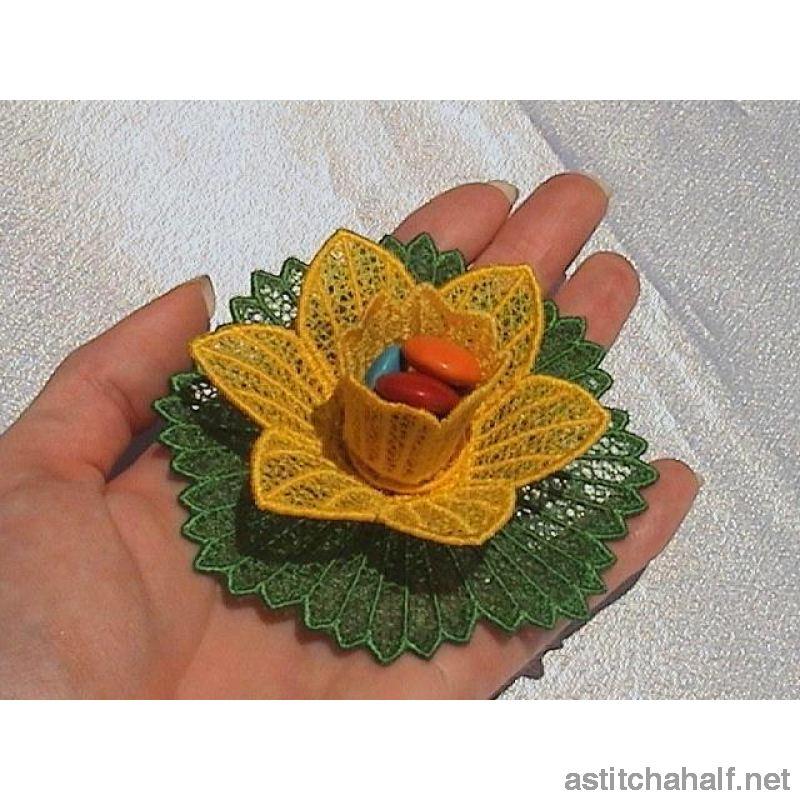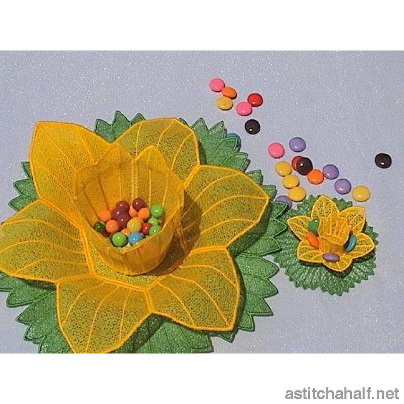 These designs will be the life of your party. Freestanding Lace Daffodils (large and small) full of treats. This collections has a large Daffodil bowl and Daffodil nut cup.