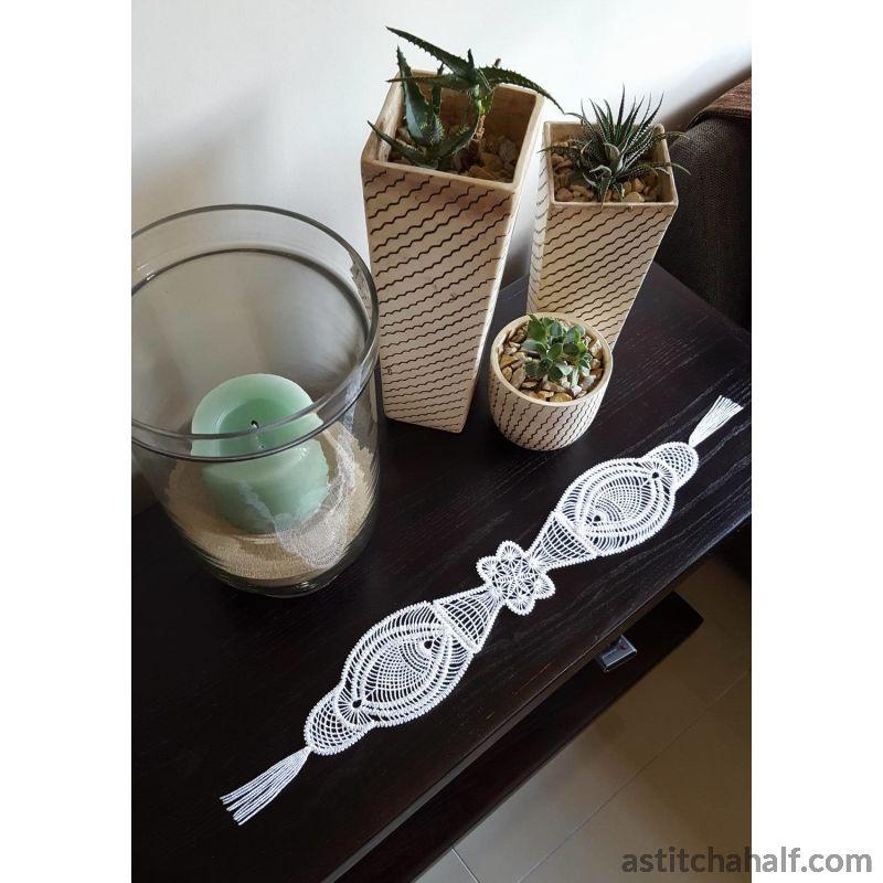 Why have a Freestanding Lace Table Runner if you can make this Freestanding Lace Table Stunner. As the name states, you can make this state of the art, amazingly beautiful Table Runner that might look quite different from the normal table runner, but is so elegantly beautiful that it will decorate any table for any event. Full instruction pdf included to assure an easy-to-do project.