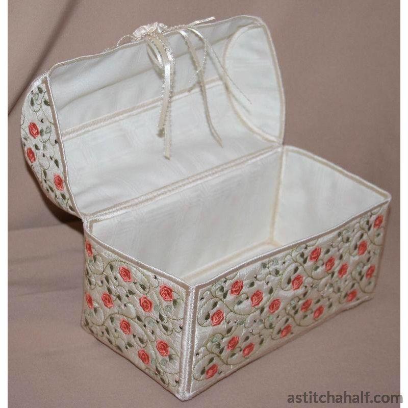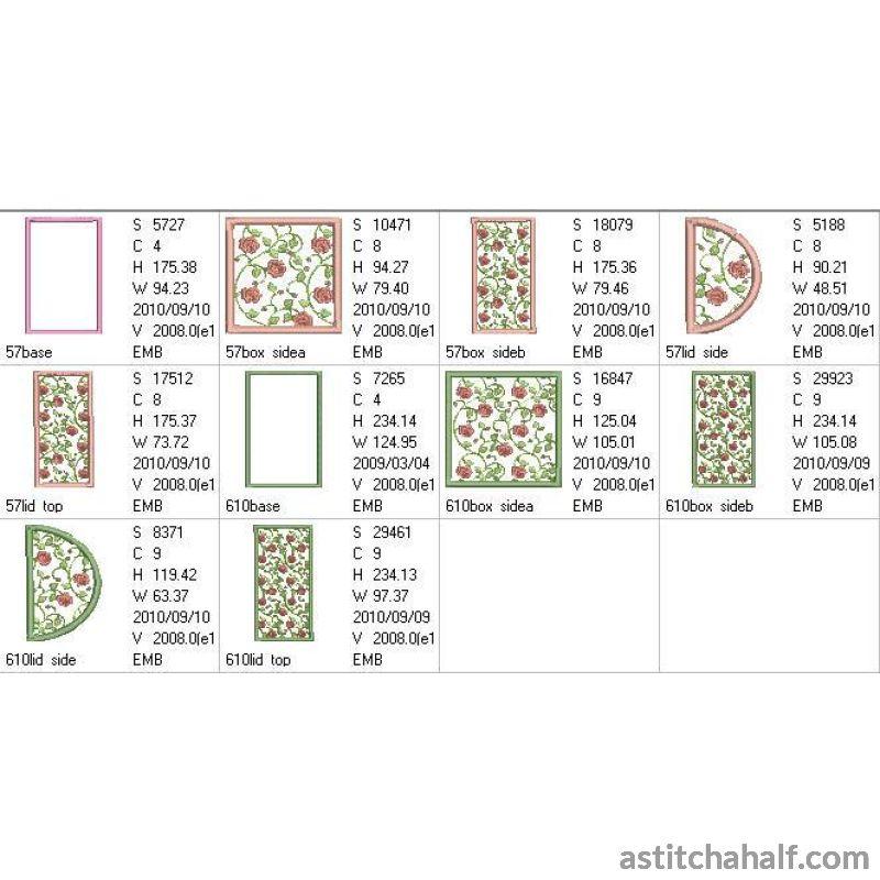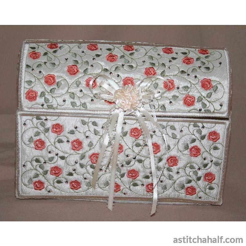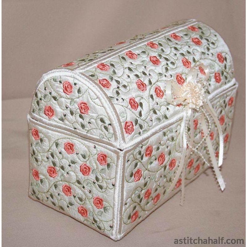 Included are the designs to complete this French Rose Chest in the 5*7 as well as 6*10 hoops.