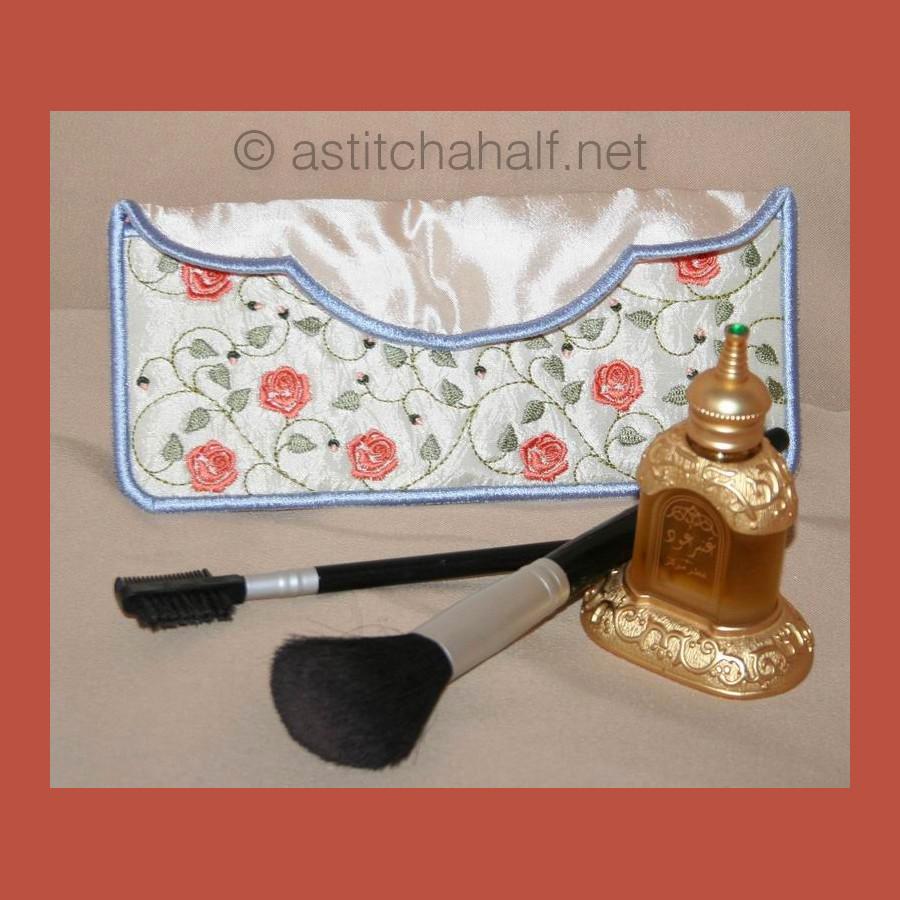 An all in the hoop French Rose Cosmetic Bag. You can also use it as a pencil case, purse etc