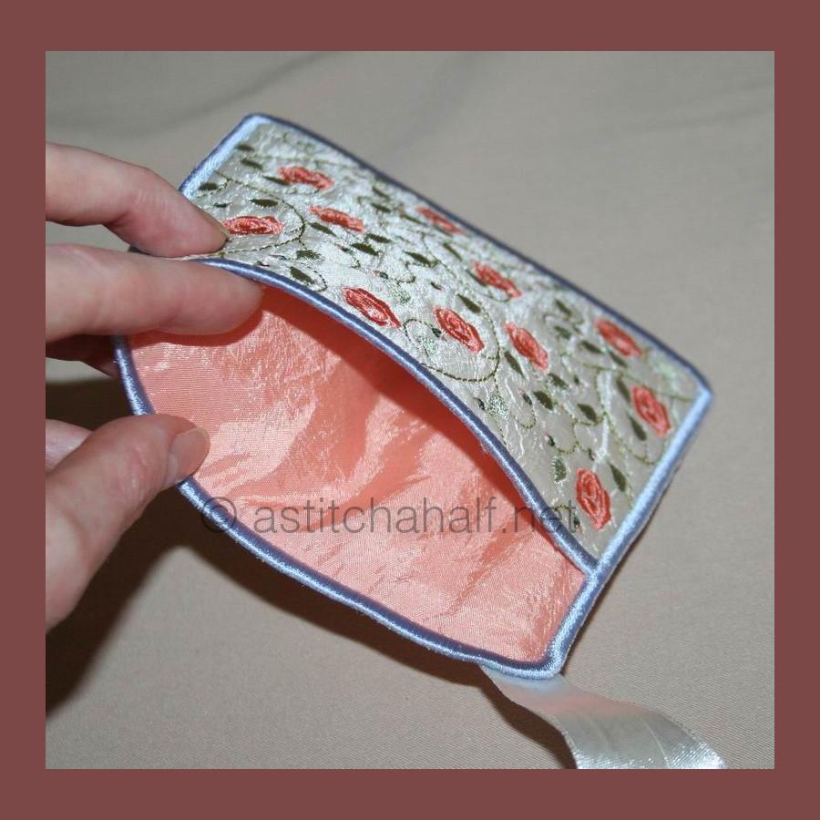 A set of dainty potholders for your kitchen. Match the contrast fabric to your kitchen and you have a practical yet pretty potholder. All n the hoop project.