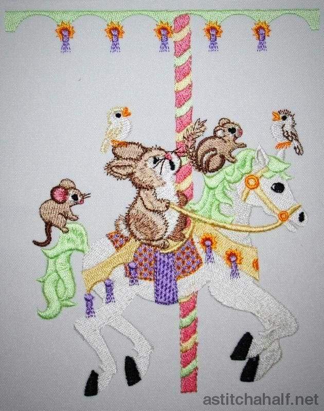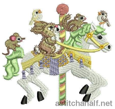 Bunny and the other Fuzzy friends are enjoying their ride on the carousel horse at the Fuzzyland Amusement park.