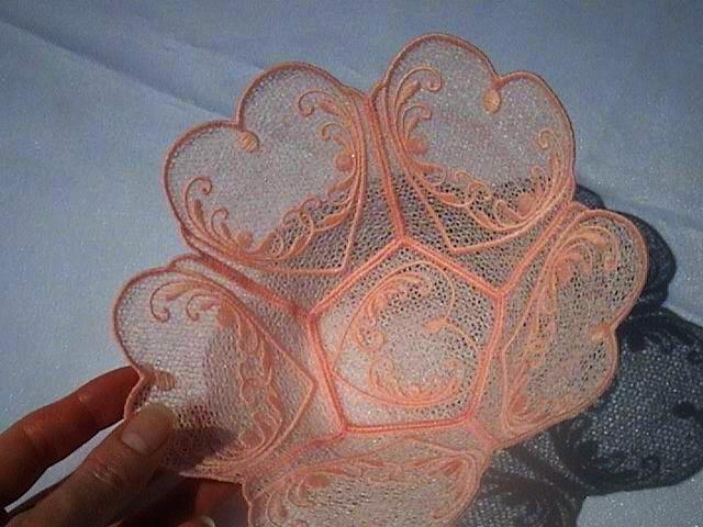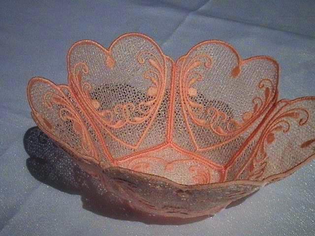 A Freestanding Lace bowl to complete in a jiffy. Use to keep treats or as a decoration, even a gift for a special friend! Heart shape design to show how much you love this person.
