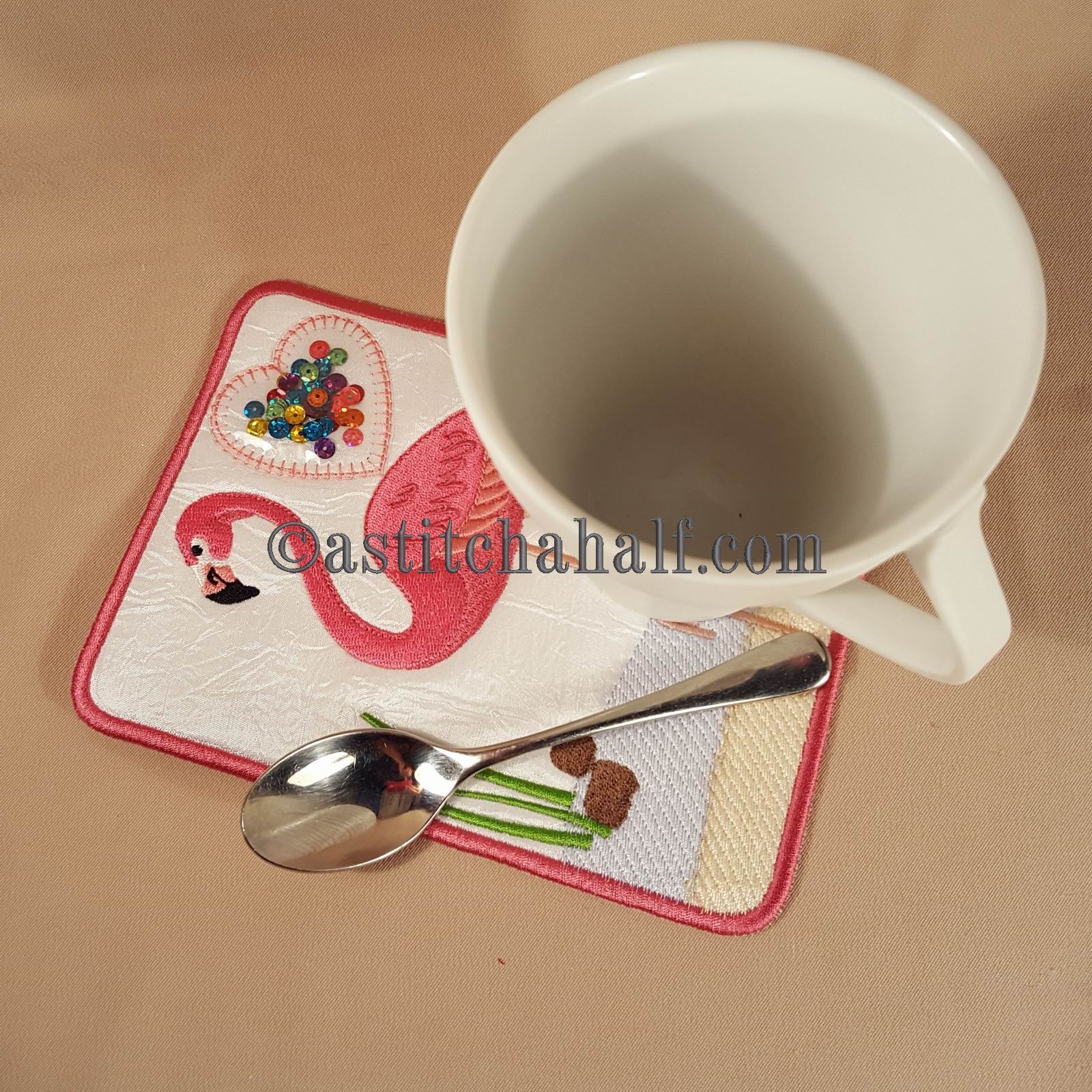 Fun Flamingo Mug Rug is very colorful, easy to make, colorful, lovable and so versatile. You can use them for your coffee or tea mugs n the kitchen. You can even use them to place your ornaments on to protect your furniture. And using your off-cut fabric to create these mug rugs simply make them a must-have.