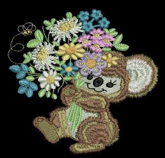 Fuzzy Billy brings flowers to a loved one. Ideal for a baby bib, onesie, T-shirt or as a colorful patch.