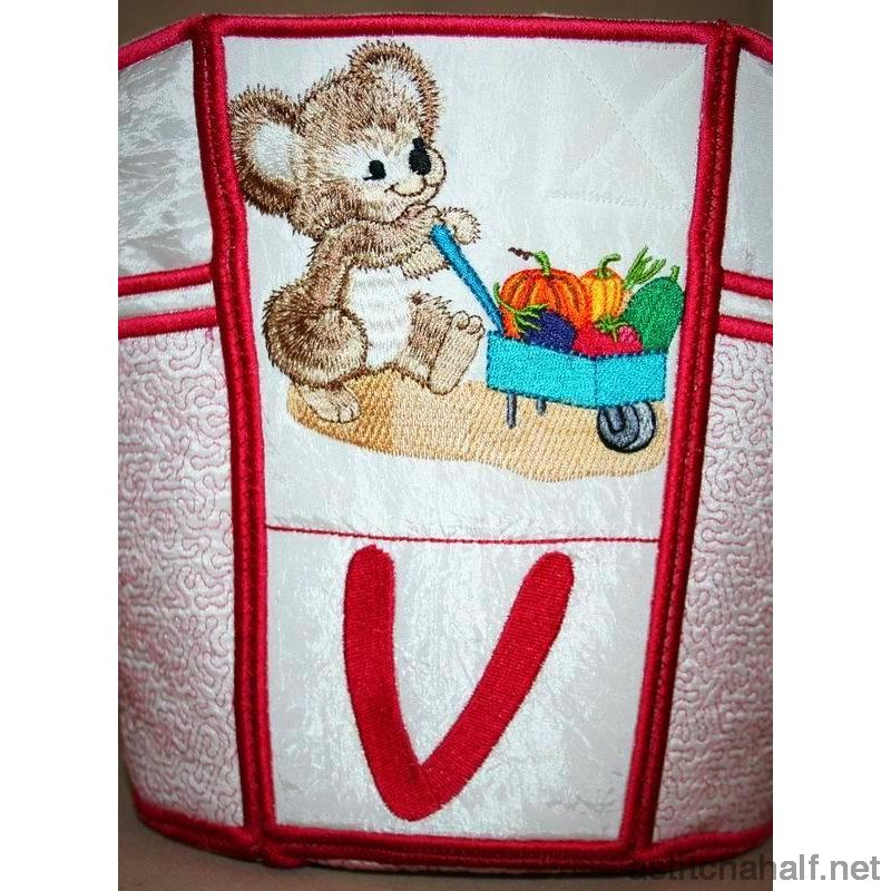 You receive designs to complete the Tote bag in 5*7, 6*8 and 6*10 hoops