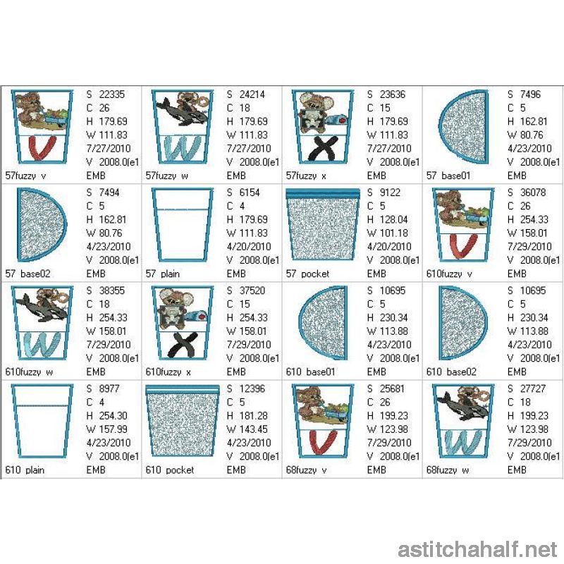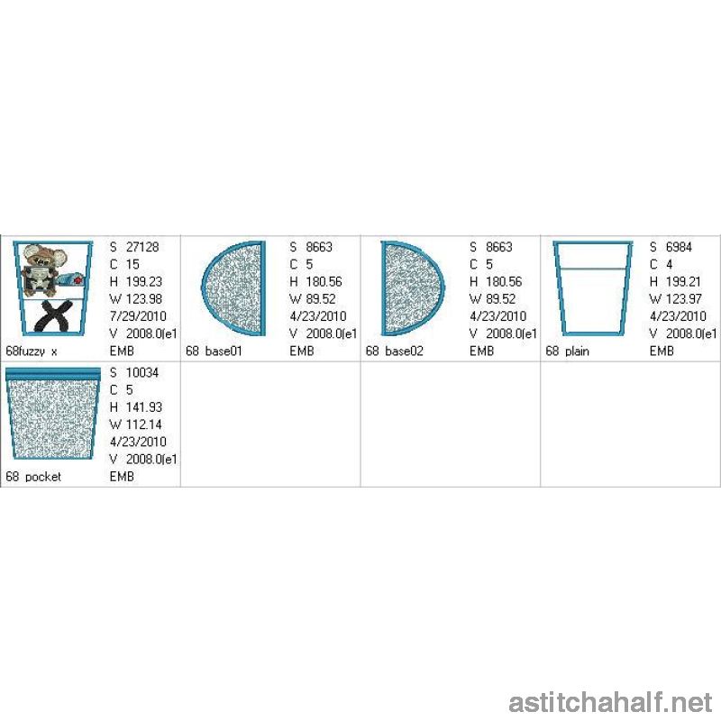 You receive 6 Fuzzy designs:3 x 5*7 hoop