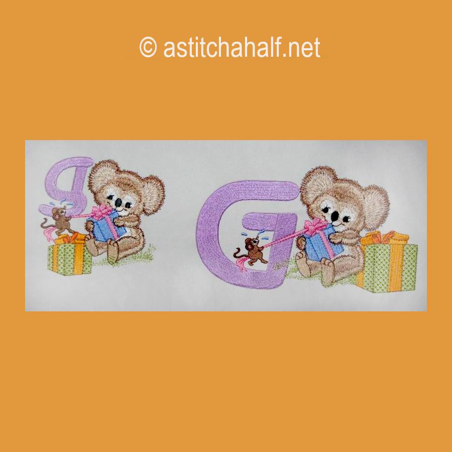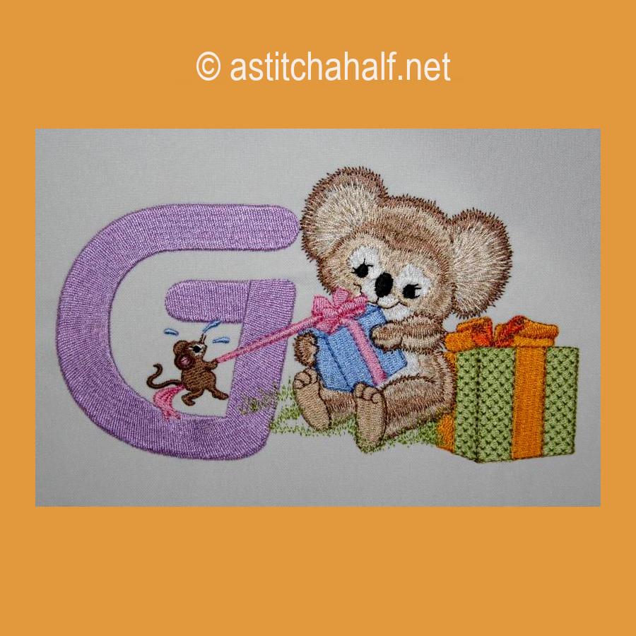 Let us learn to spell. The Fuzzy Bears will teach us the letters. G is for Gift.