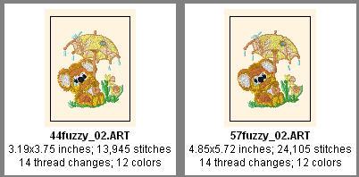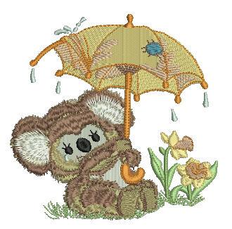 Fuzzy Louis sitting under his umbrella in the rain. Ideal for a baby bib, onesie, T-shirt or as a colorful patch.