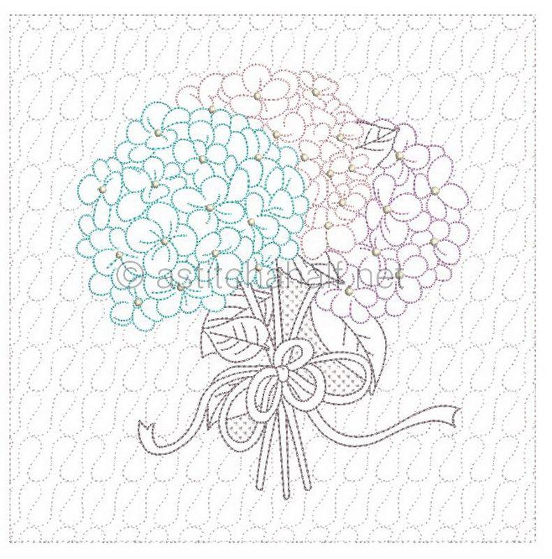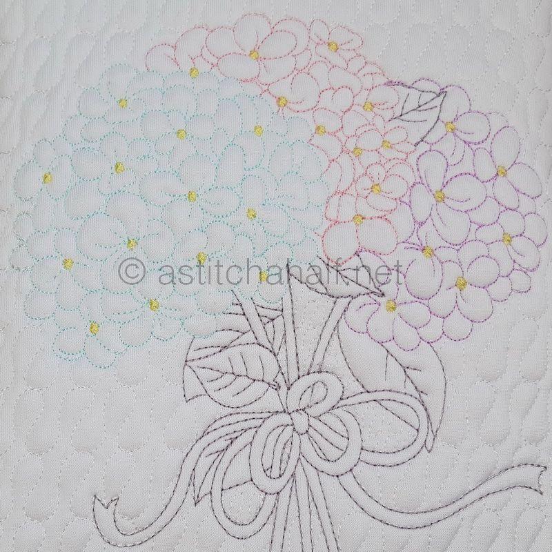 Use the Gentle Blooming Hydrangea Cross Body Bag designs to create different sized Cross-Bags, or use the Designs on Projects you Love like the large 9" design for a Quilt Block.
