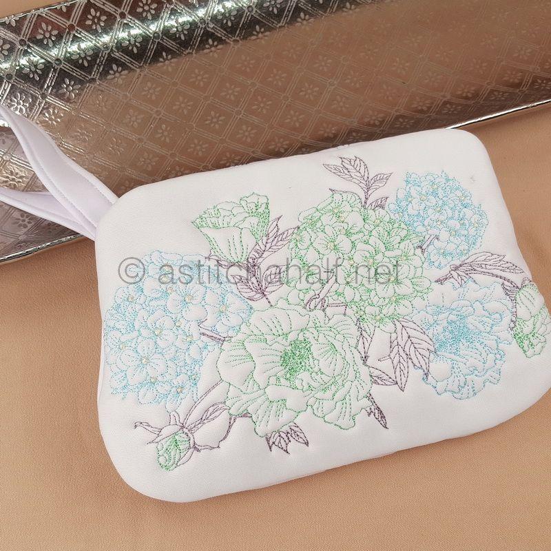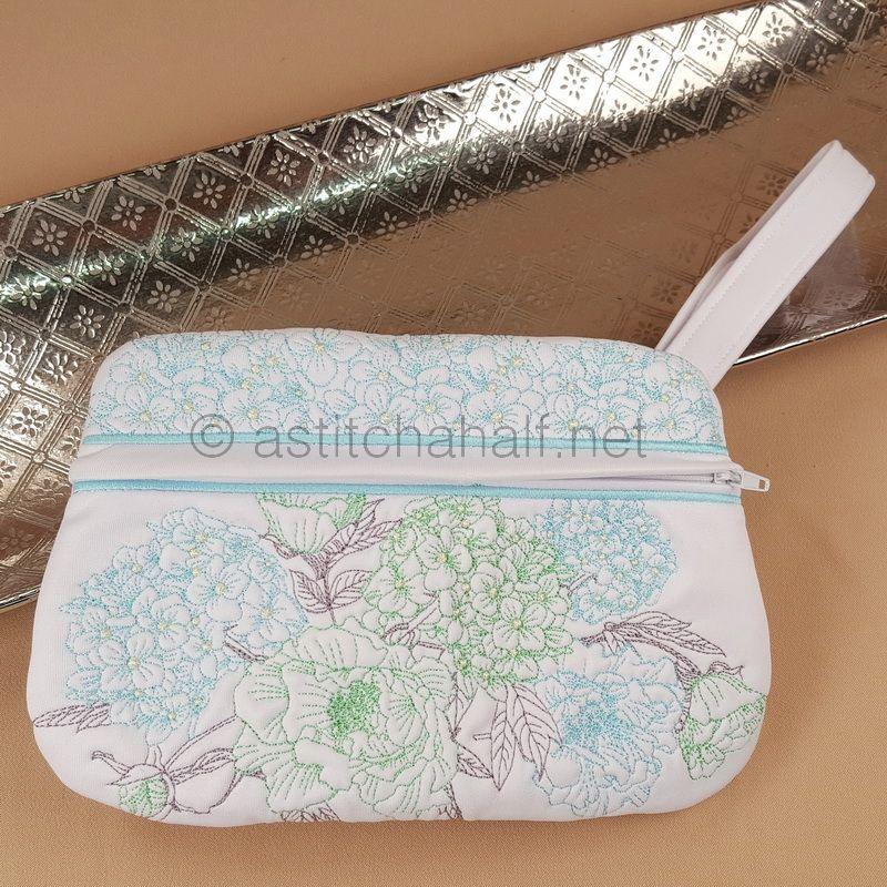 Make This Fully Lined Gentle Blooming Hydrangea Zipper Purse, complete with a Zipper done All In The Hoop.