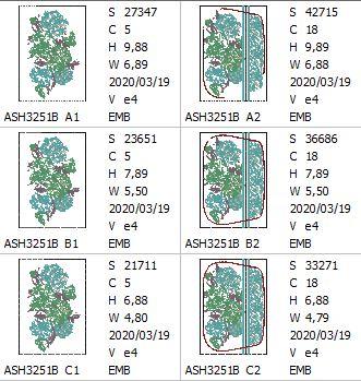 Stitches: A= 19,672 – 24,980 B= 17,081 – 21,047 C= 15,476 – 18,831