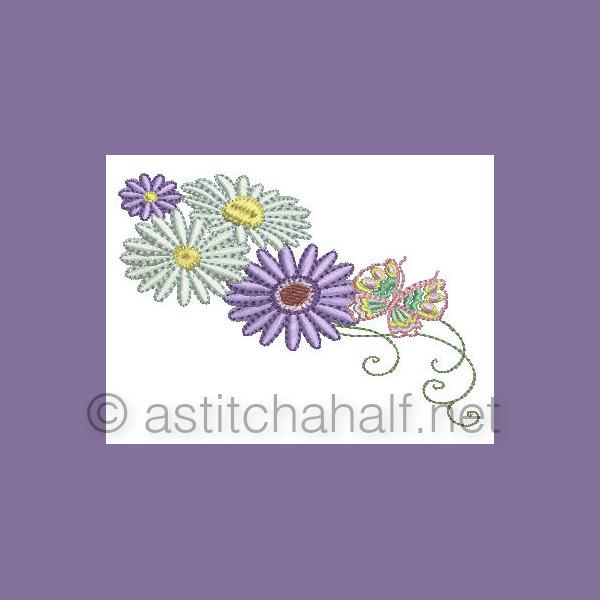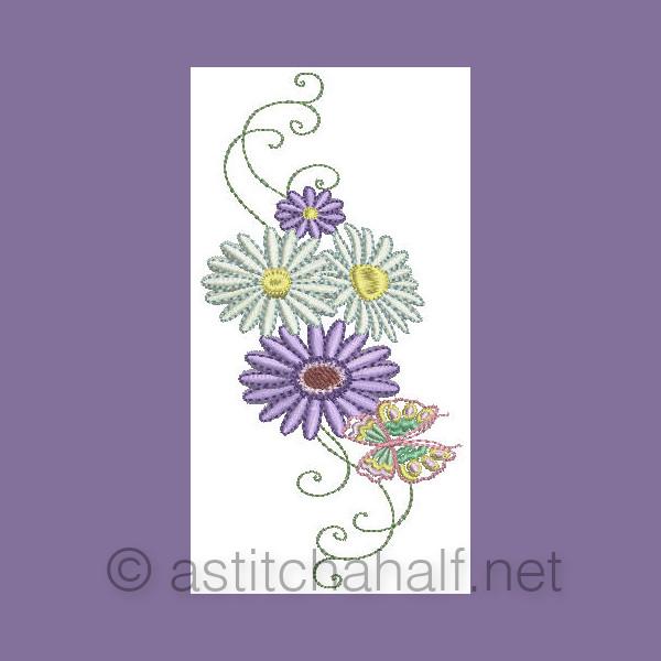 Brighten up a new or used item with this colorful embroidered Gerbera Extra 04. A summer table cloth with matching napkins, even the pockets on a denim or summer`s shirt will look bright and colorful!