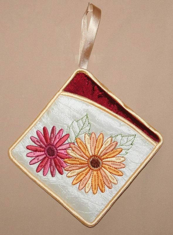 An all in the hoop project!! Match the contrast fabric to your kitchen and you have a practical yet pretty potholder.