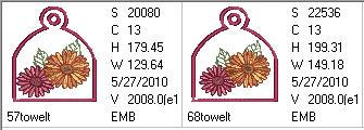 Gerbera Towel Toppers, A pretty and practical way to hang your kitchen towel from. Quick and easy - only one hooping and your project is complete!