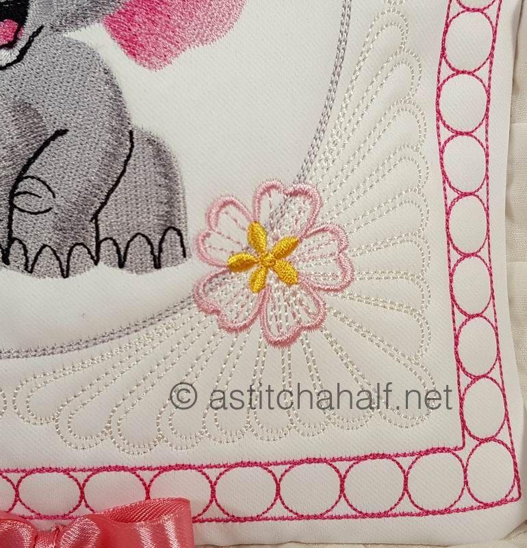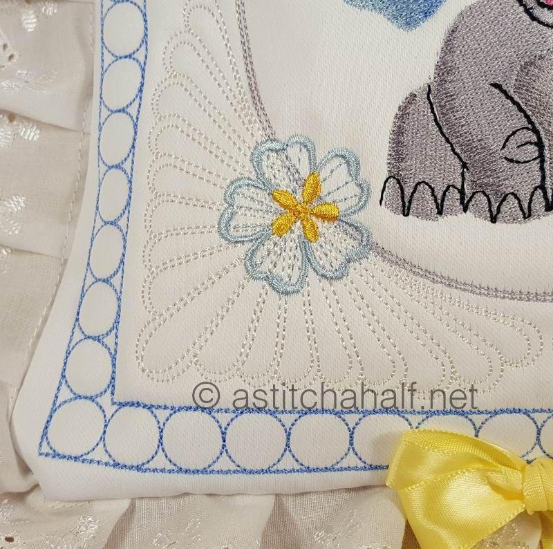 You can embroider a variety of matching projects with the same theme. These cute designs are unique and timeless, as it can be used to decorate your baby room, and the flowers and corners are perfect for a show pillow, aprons or simply a continuous border of your favorite tablecloth. A beautiful addition to your embroidery collection.