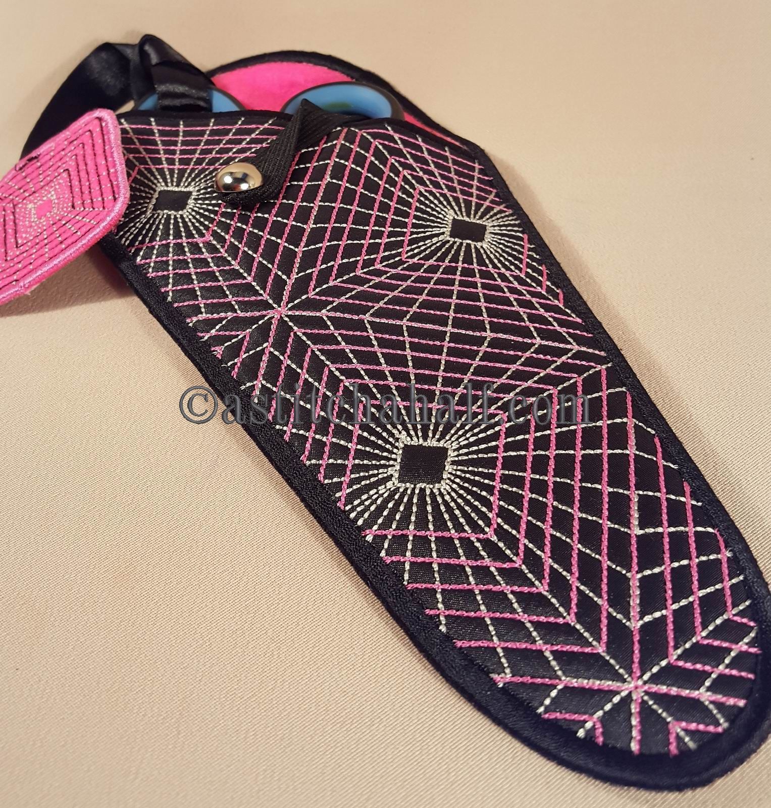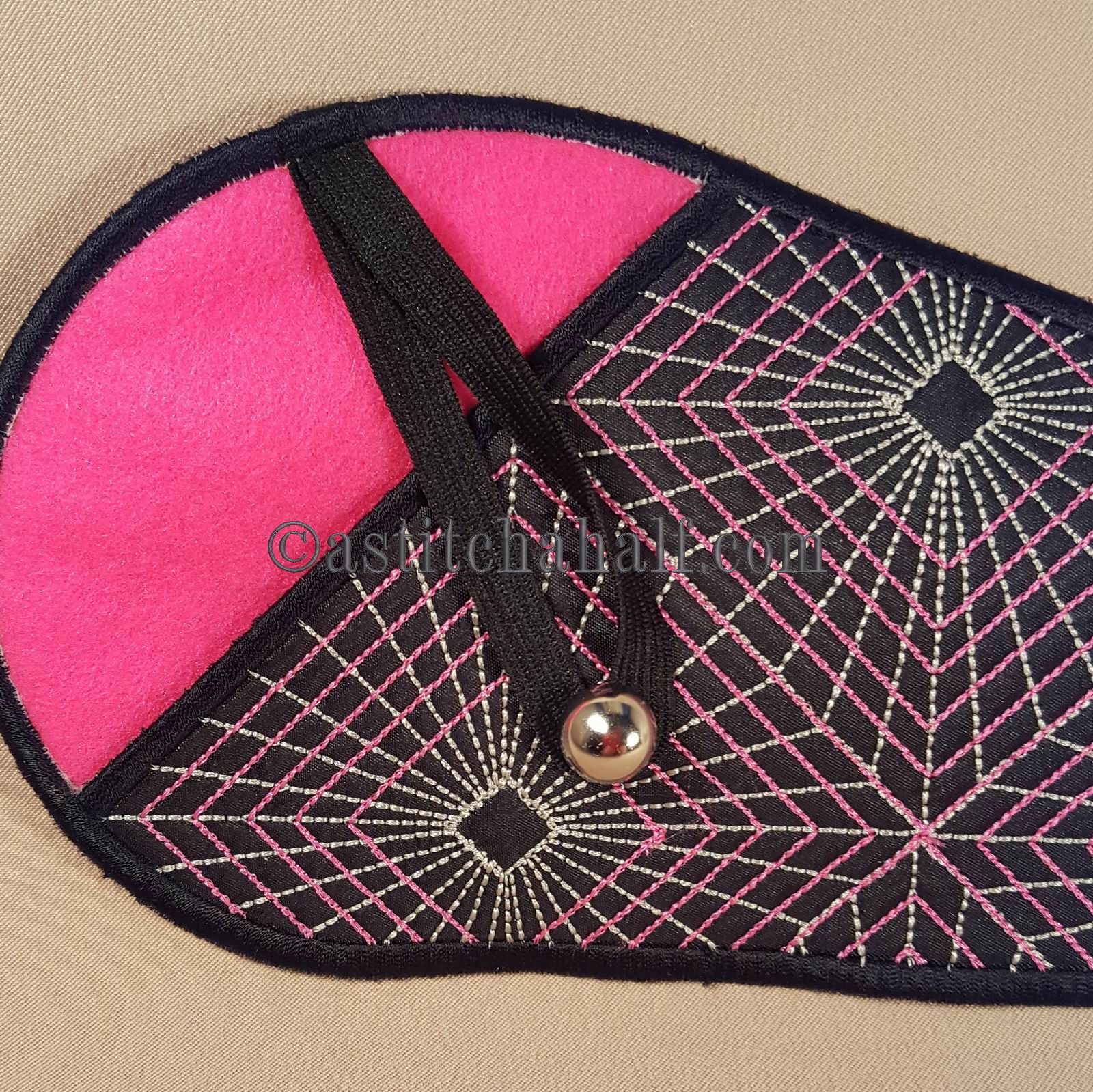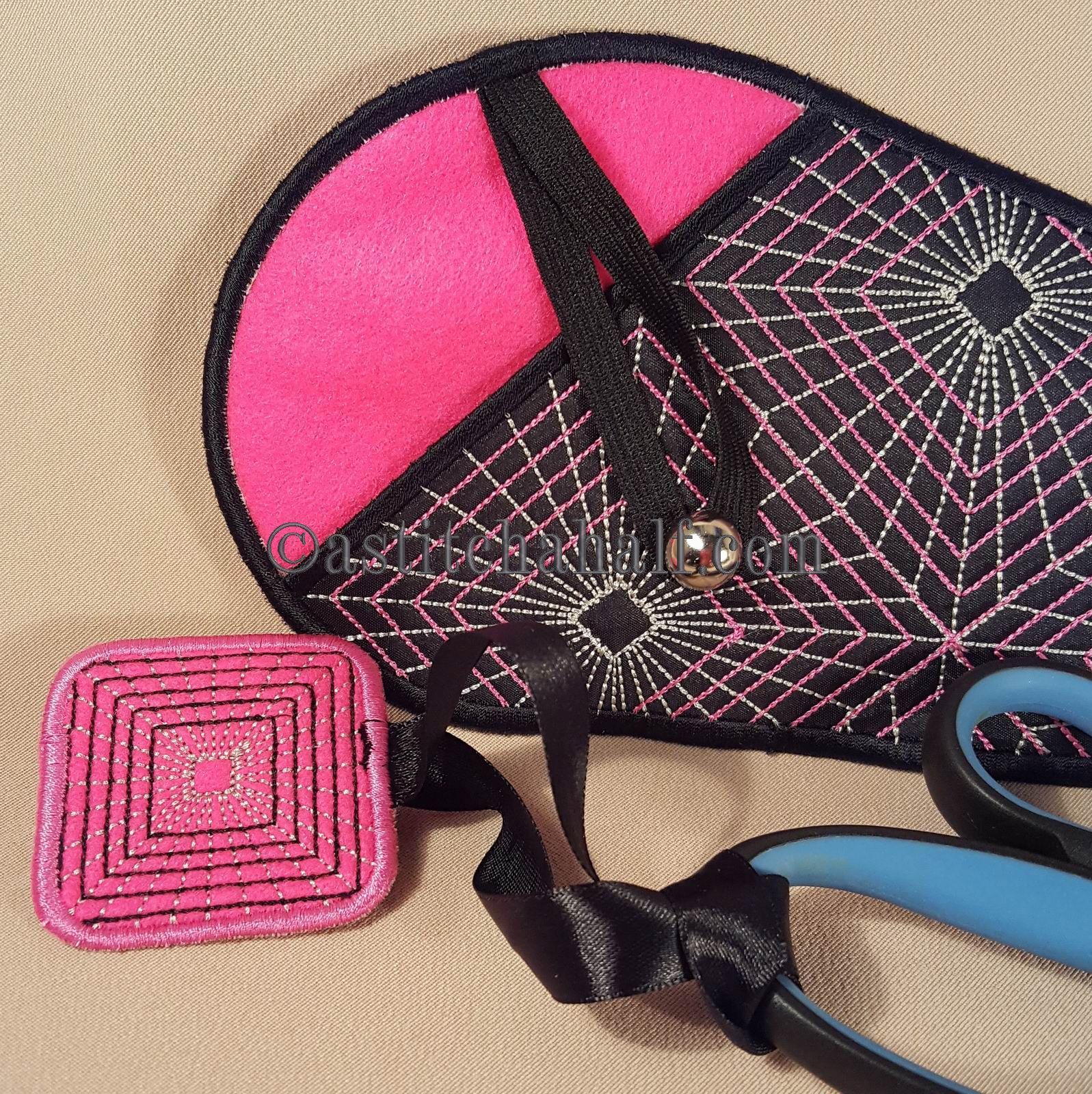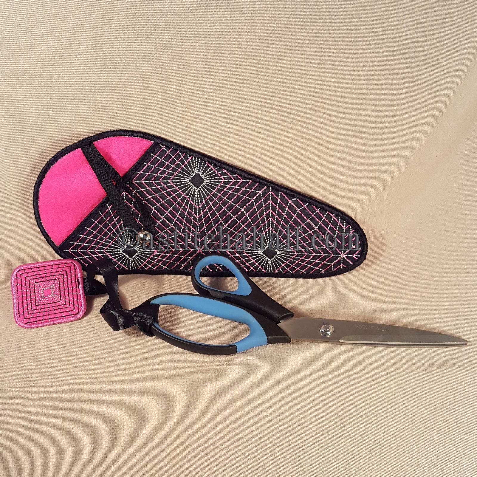 The Gorgeous Geometric Scissor Cases with Fob is a great "in-the-hoop" project, a "must have" for every seamstress and embroidery enthusiast! Fits scissors from small to large. The best feature...Add the matching fob to match your scissors to their Unique Sleeve.