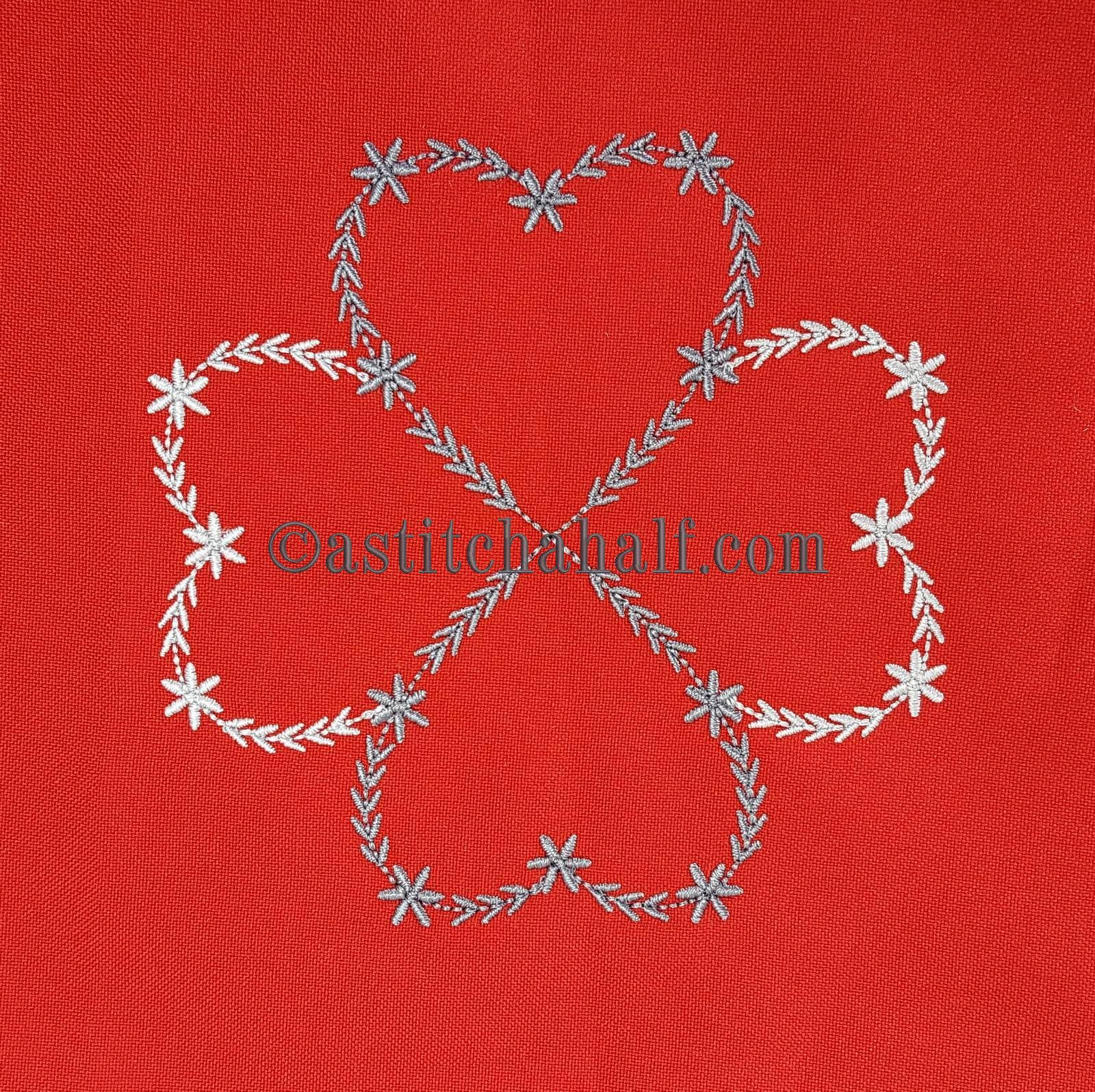 Embroider this simple yet pretty Heart Shape Spring Wreath design to embellish a Dish Cloth, Napkins or Linen. Ideal to add a Monogram.