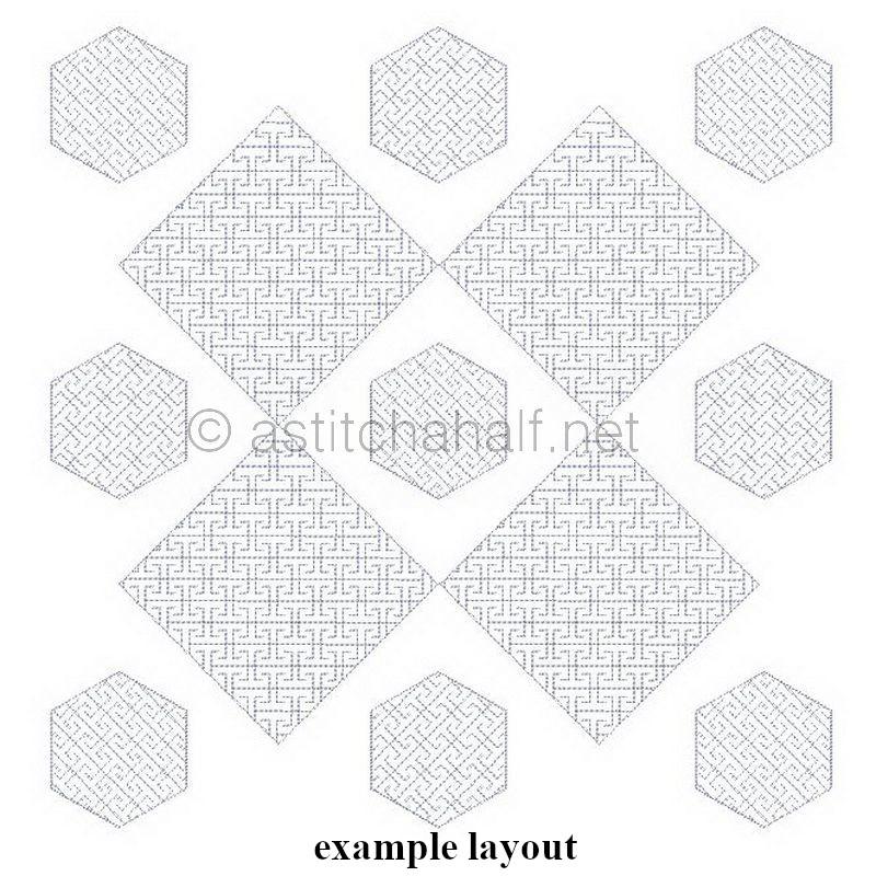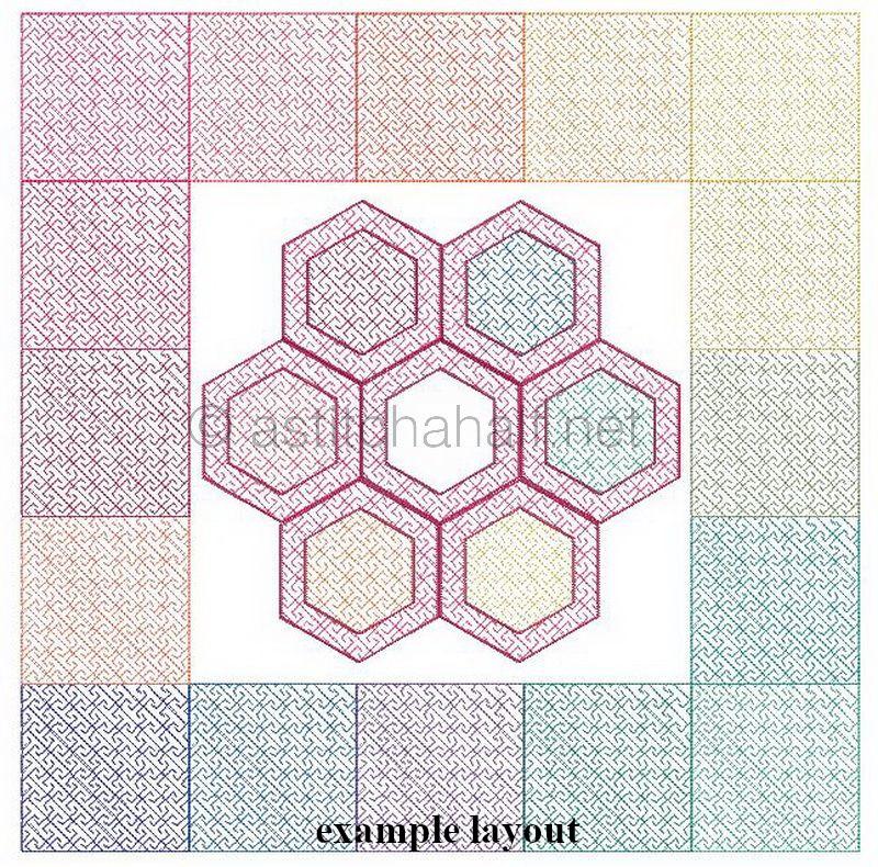 Hexies or Hexagonal Shapes allow you to create endless Patterns and Projects! We included a Hexie frame and Center piece separately and combined. The one fits perfectly into the other. You also get this Unique pattern in 4 square shapes. The Largest Block (8" by 8") will allow you to Pre-Quilt your fabric with this Lovely Pattern and use as is or Embroider More Crazy and Fun Designs on the Pre-Quilted Block. Have fun with this Collectors Set!