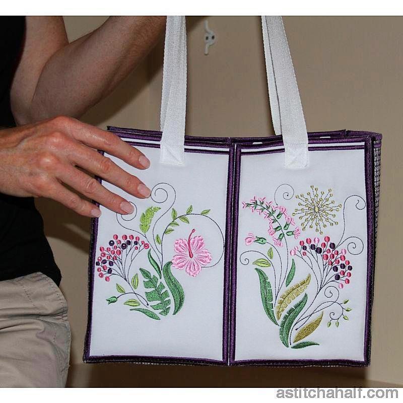 Embroider a beautiful Island Style Tote Bag. This beautiful pattern will appeal to young and old. Change your contrast fabric to create a fresh look.