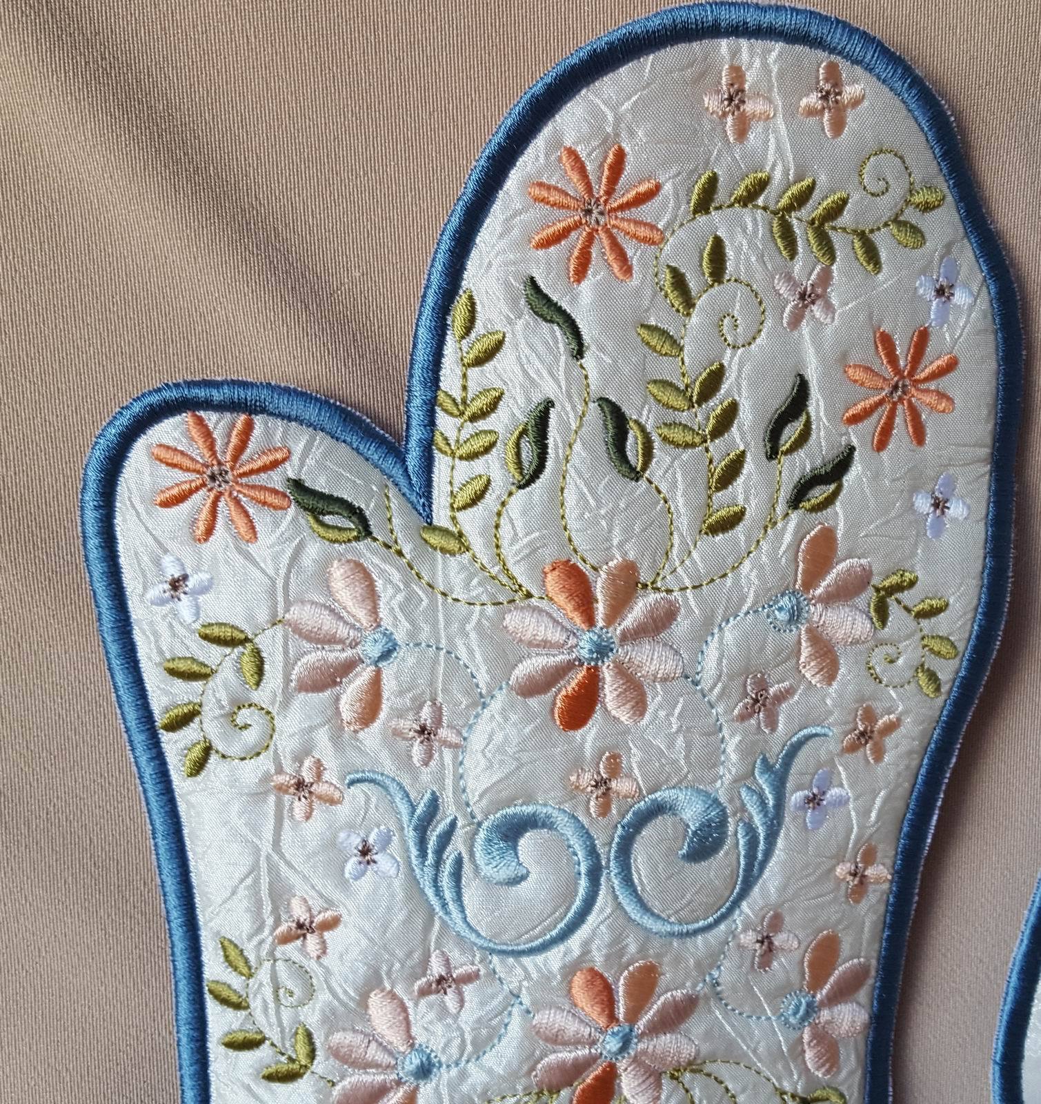 In only 1 Hooping you can create an Oven mitt or Mug rug. If you have stitched out one of our popular Eyeglass Cases then you will enjoy this project as it is based on the exact same steps. A complete PDF instruction file is included in your instant download with the color change sheet.