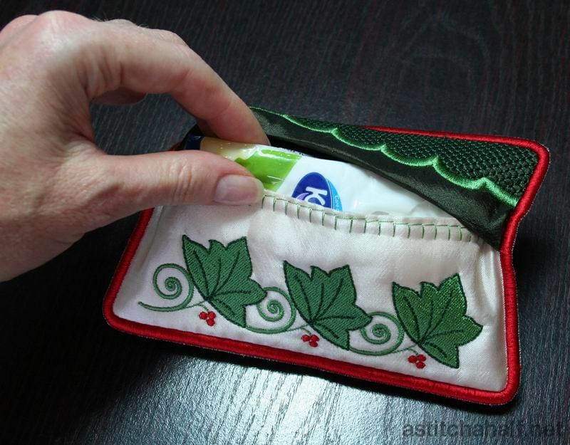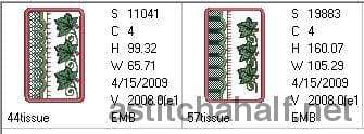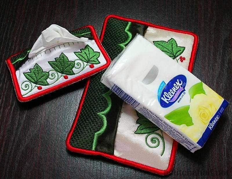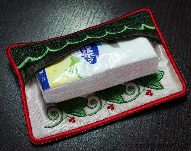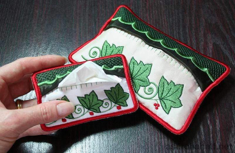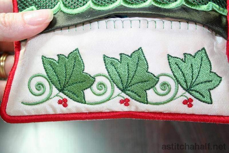 Your Ivy designs are available in a variety of textures...enjoy stitching out these ones in your favorite mix of colors!!! Kleenex pockets are always handy - now you can store them in this luxurious pocket.