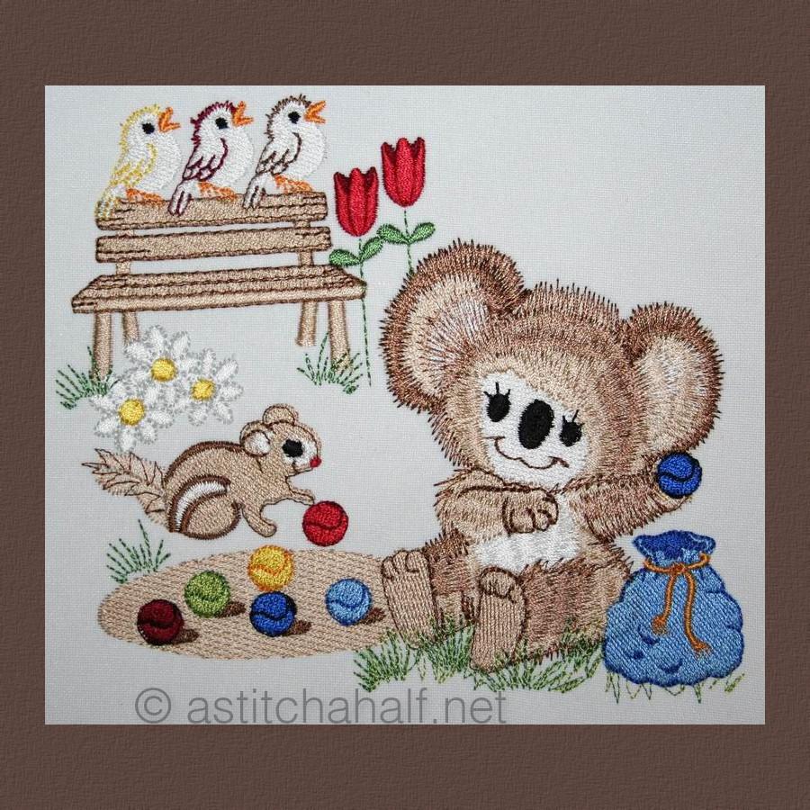Jacob Fuzzy is playing marbles with the little squirrel.