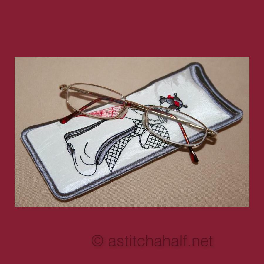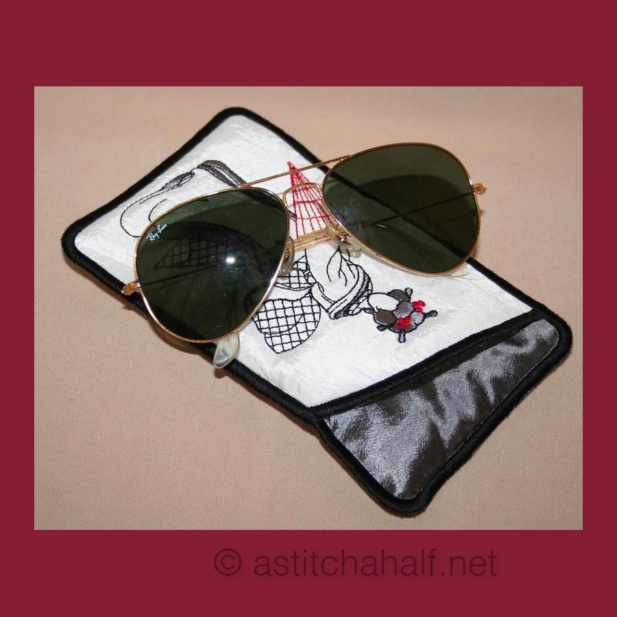 You receive 2 eyeglass cases, a wide and a slim size for your reading and sun glasses. The best of all...this is an ALL IN THE HOOP project, thus only one hooping, NO sewing required
