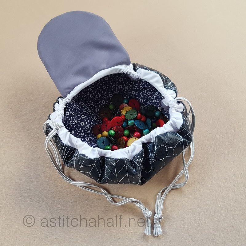 Fabulous Extra: Stitch Out the Inner Pouch to make Your Circle Bag a Jewelry Pouch with 8 separate pockets. Ideal to pack your Jewelry while traveling.