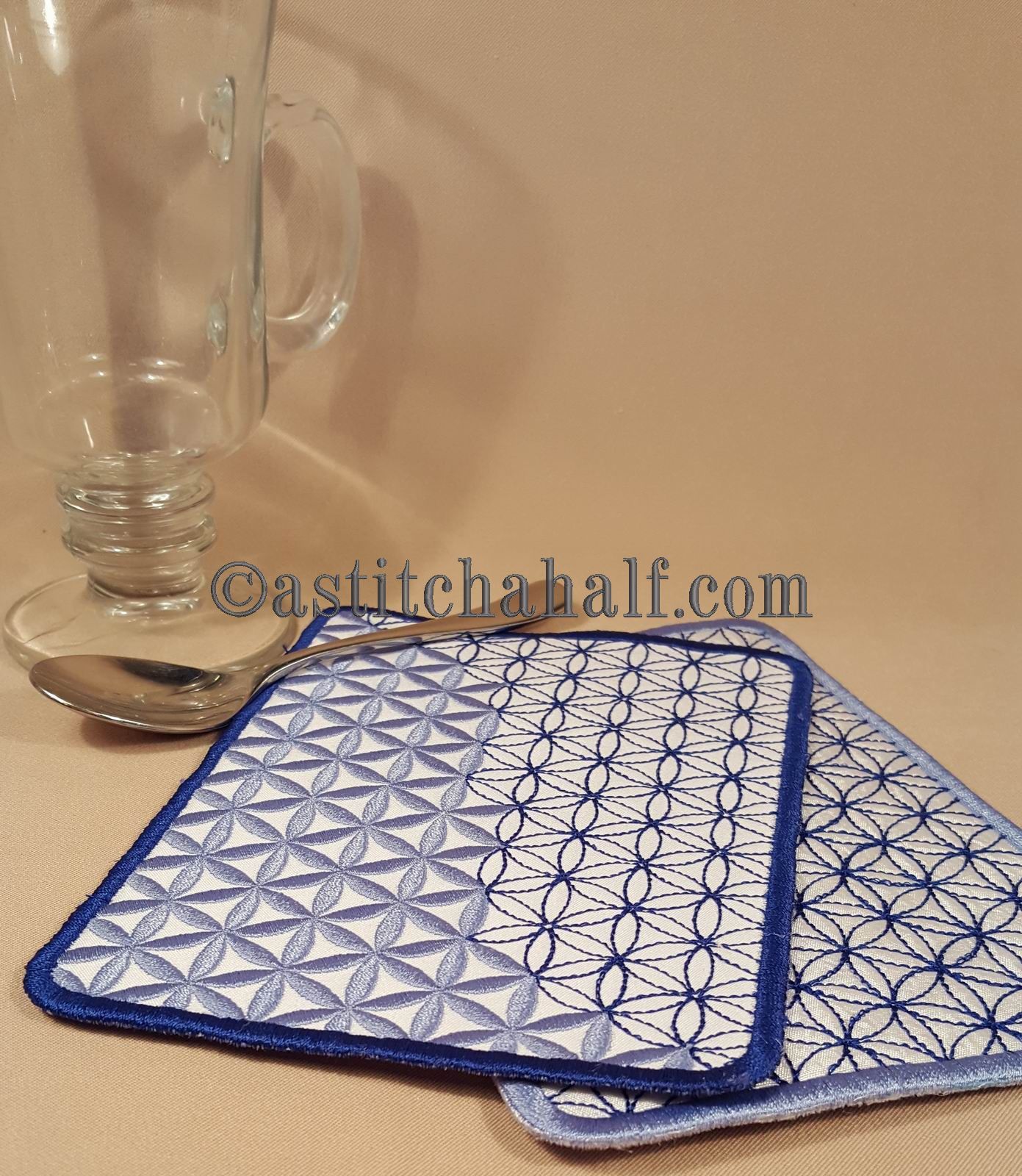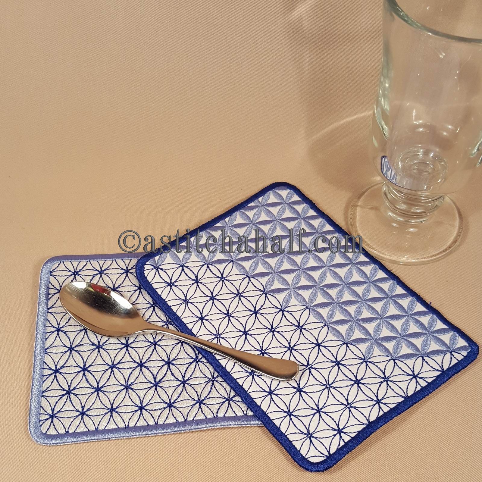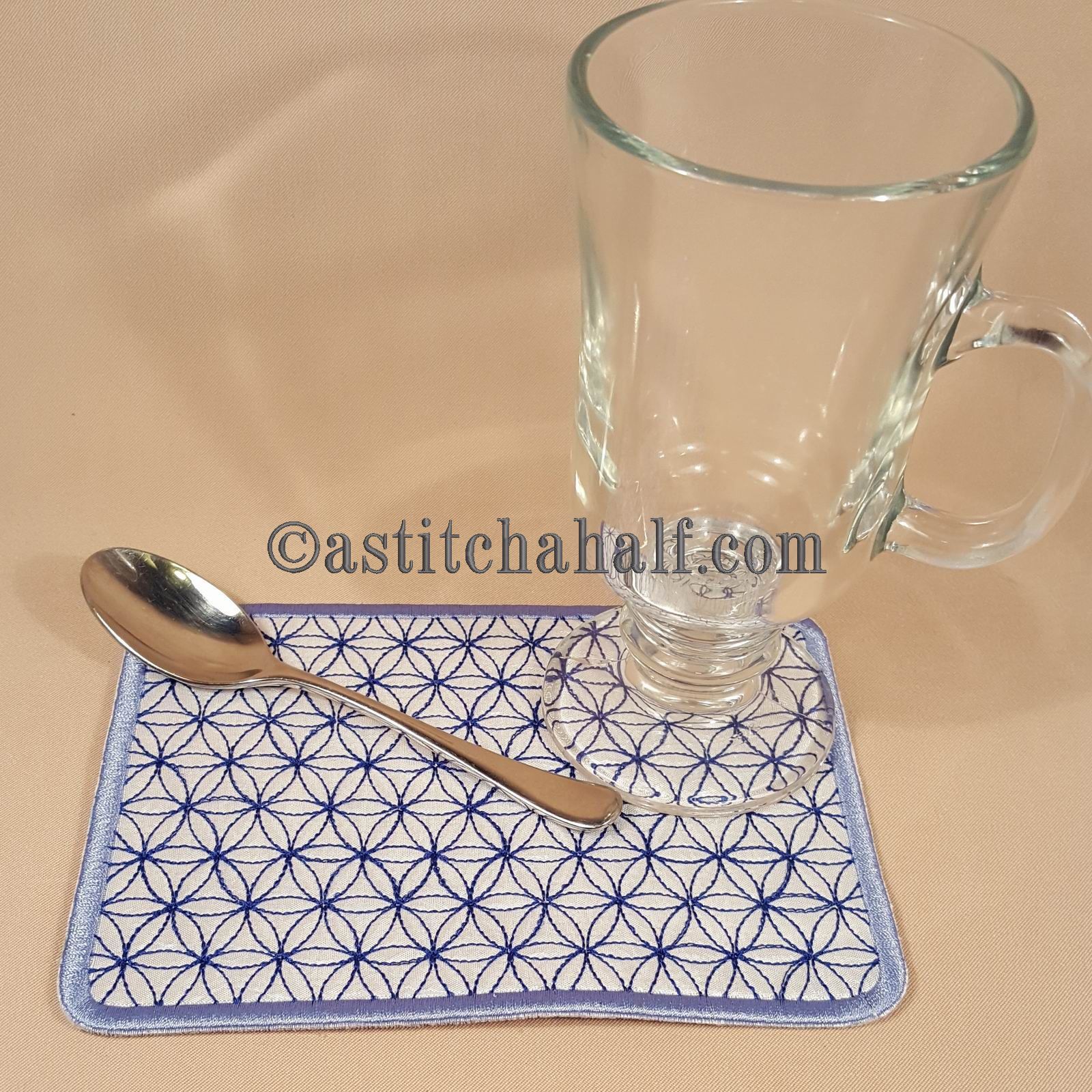 Japanese Sashiko Mug Rugs are smaller than a place mat and larger than a coaster. Ideal for your your coffee and a snack.