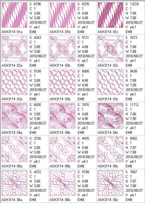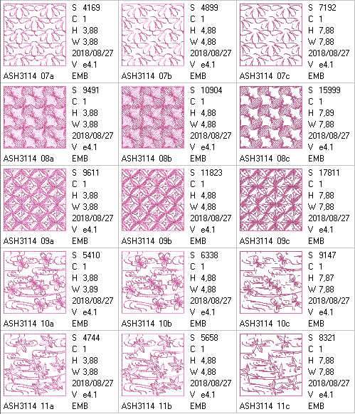 4*4 hoop designs x 11 (stitch count = 3726 - 9611)
